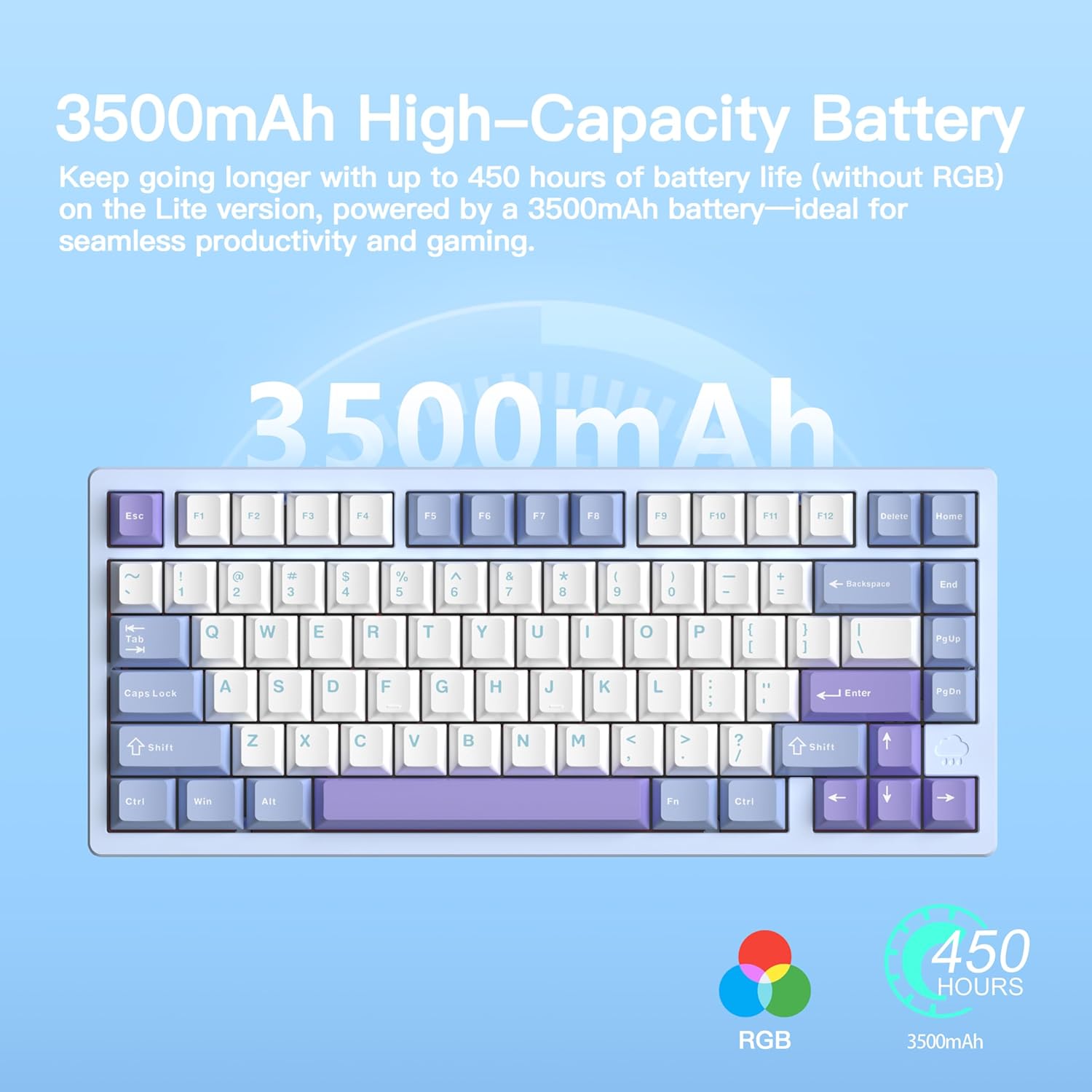 KEEBMONKEY WOBKEY Rainy 75 CNC Aluminum HMX/JWK/Cocoa Switches Triple-Mode Connectivity Mechanical Keyboard with Superior Acoustics, RGB/PP/Gradient Glass/3500mAh/Violet Switch (Standard - Blue)