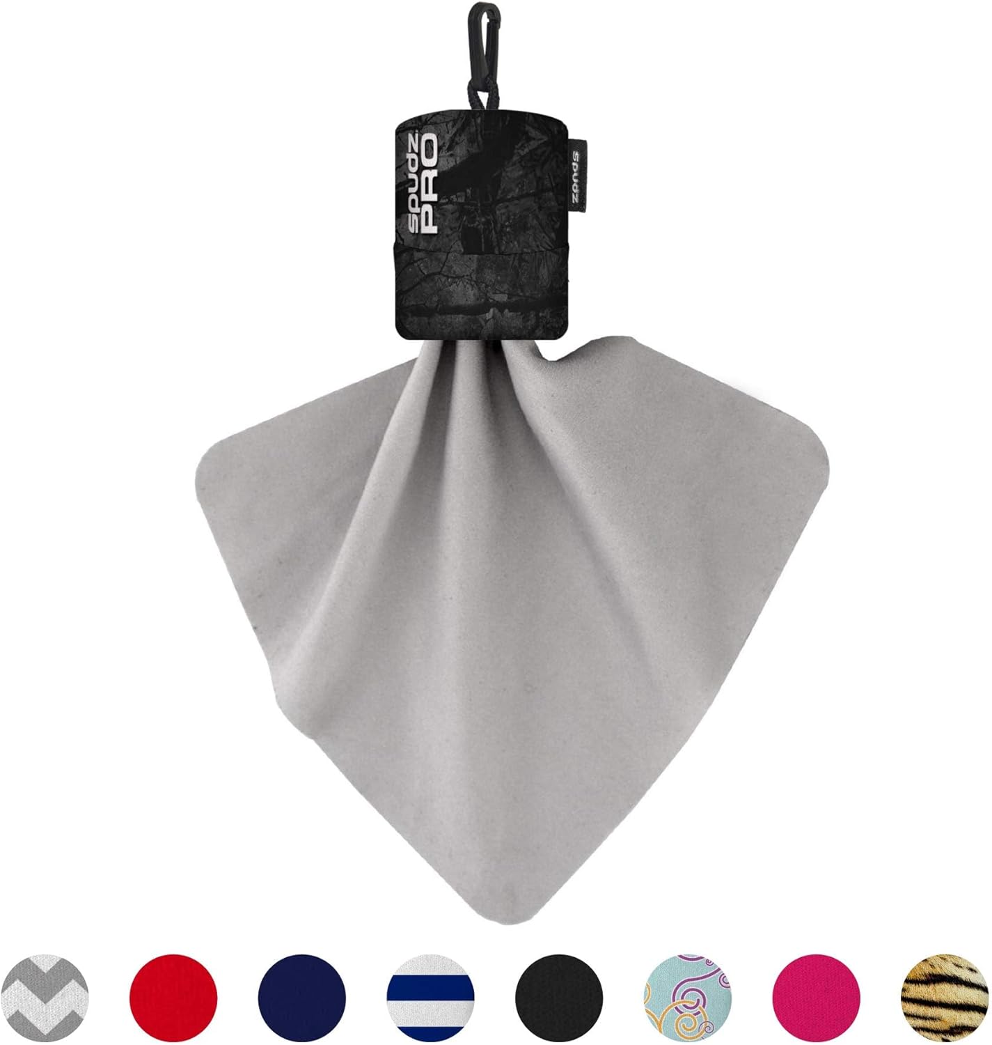 SPUDZ Classic Microfiber Lens Cleaner – Clip-On Pouch, Washable – for Binoculars, Scopes, Glasses, Screens | Stealth Shadow, 6 x 6 Inch (3-Pack)