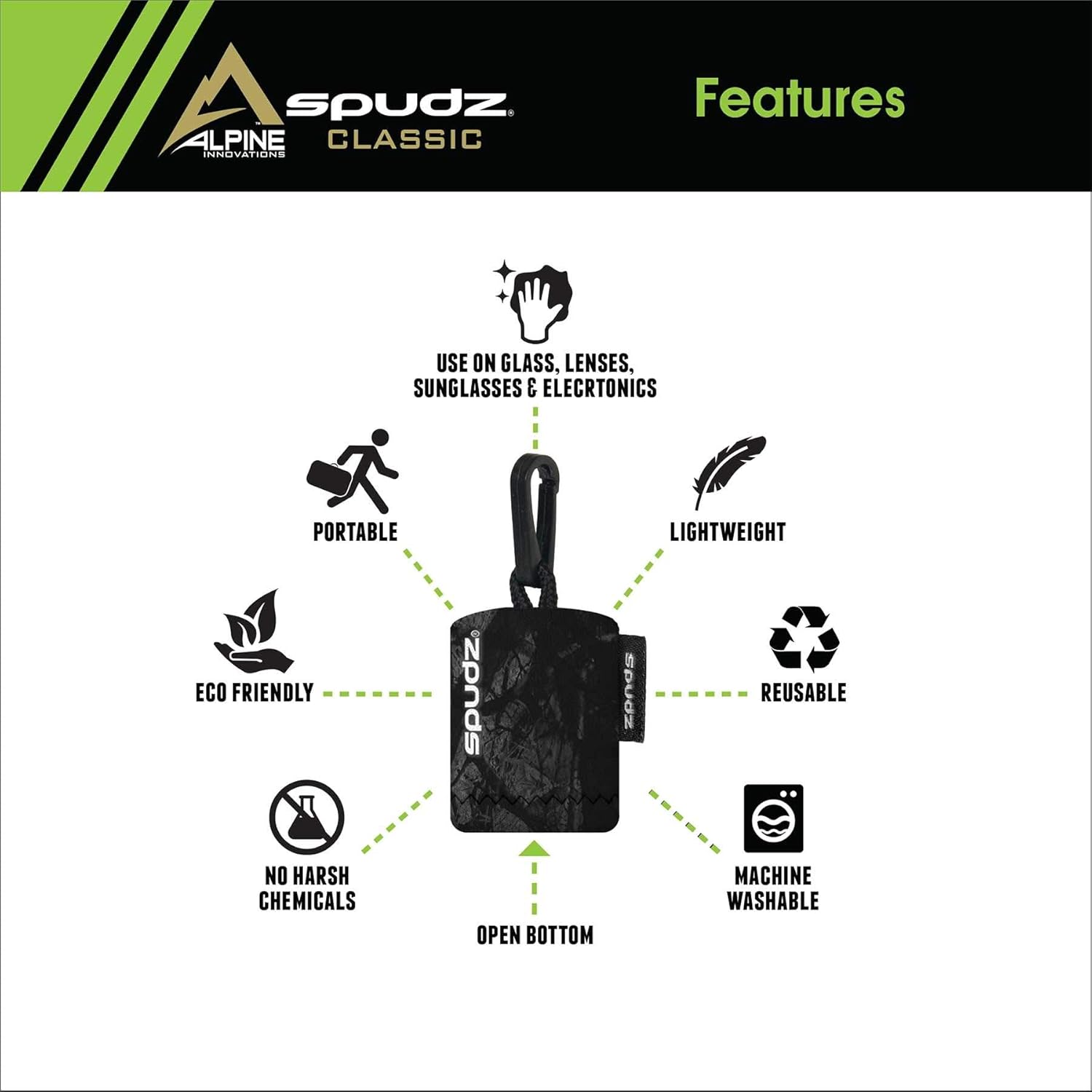 - Made in the USA: Our quality speaks for itself. The product is made with top quality components that are durable and built to last. Spudz Ultra Premium Microfiber Lens Cloth is machine washable and reusable. Spudz Ultra is weatherproof and can properly clean optics no matter what the condition. You can choose from a variety of eye catching patterns to fit your outdoor activity.