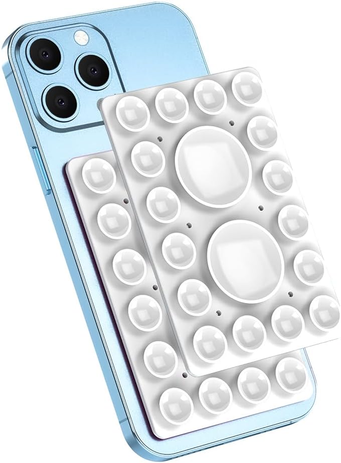 Silicone Suction Phone Holder Mount,Silicon Adhesive Phone Accessory for iPhone and Android, Hands-Free Mirror Shower Phone Holder,TikTok Videos and Selfies (White, Single Sided)