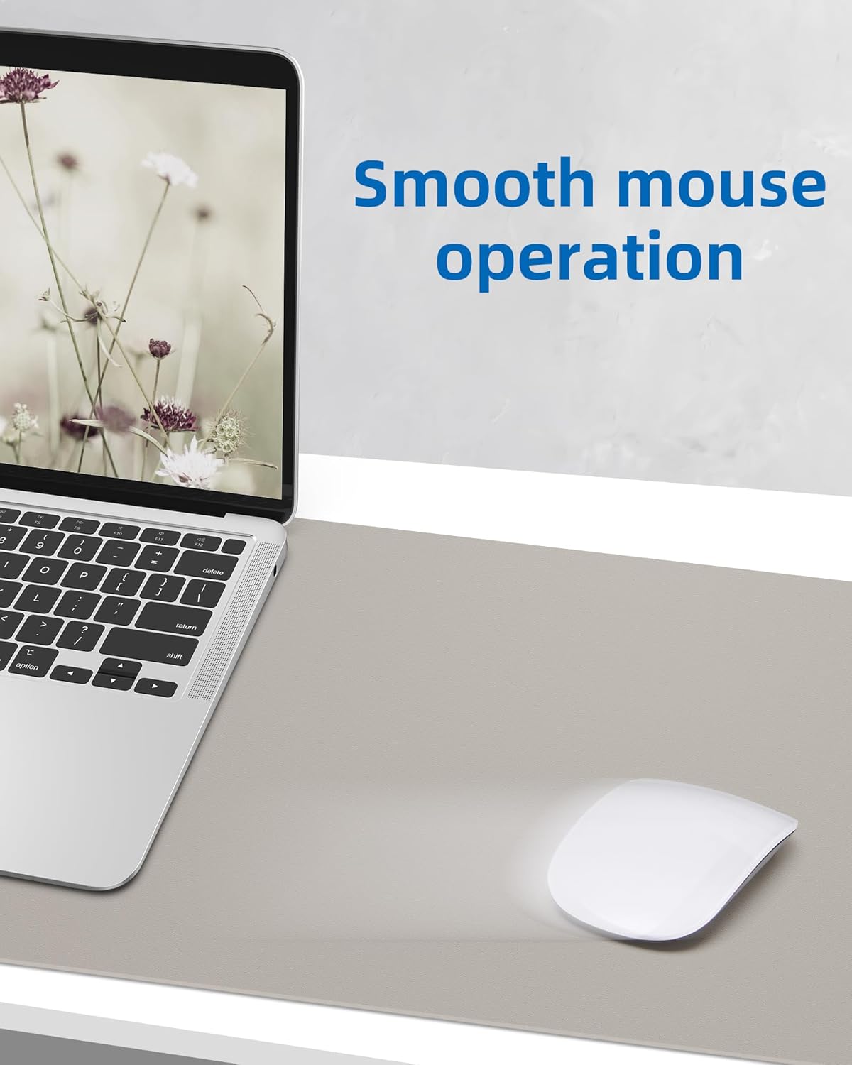 Leather Desk Pad Blotter,Mouse Pad,Office Desk Mat, Non-Slip PU Leather Desk mat,Large Desk mat,Waterproof Keyboard mat for Office/Home/Decor (Light Grye,35" x 17")