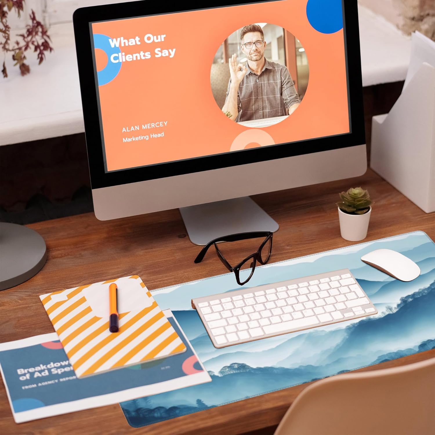 Large Gaming Mouse Pad for Desk,Mountain Desk Mat,Misty Forest Mountains Desk Pad,Extended Big Computer Keyboard Mouse Pad with Non-Slip Base and Stitched Edge,31.5"x11.8"