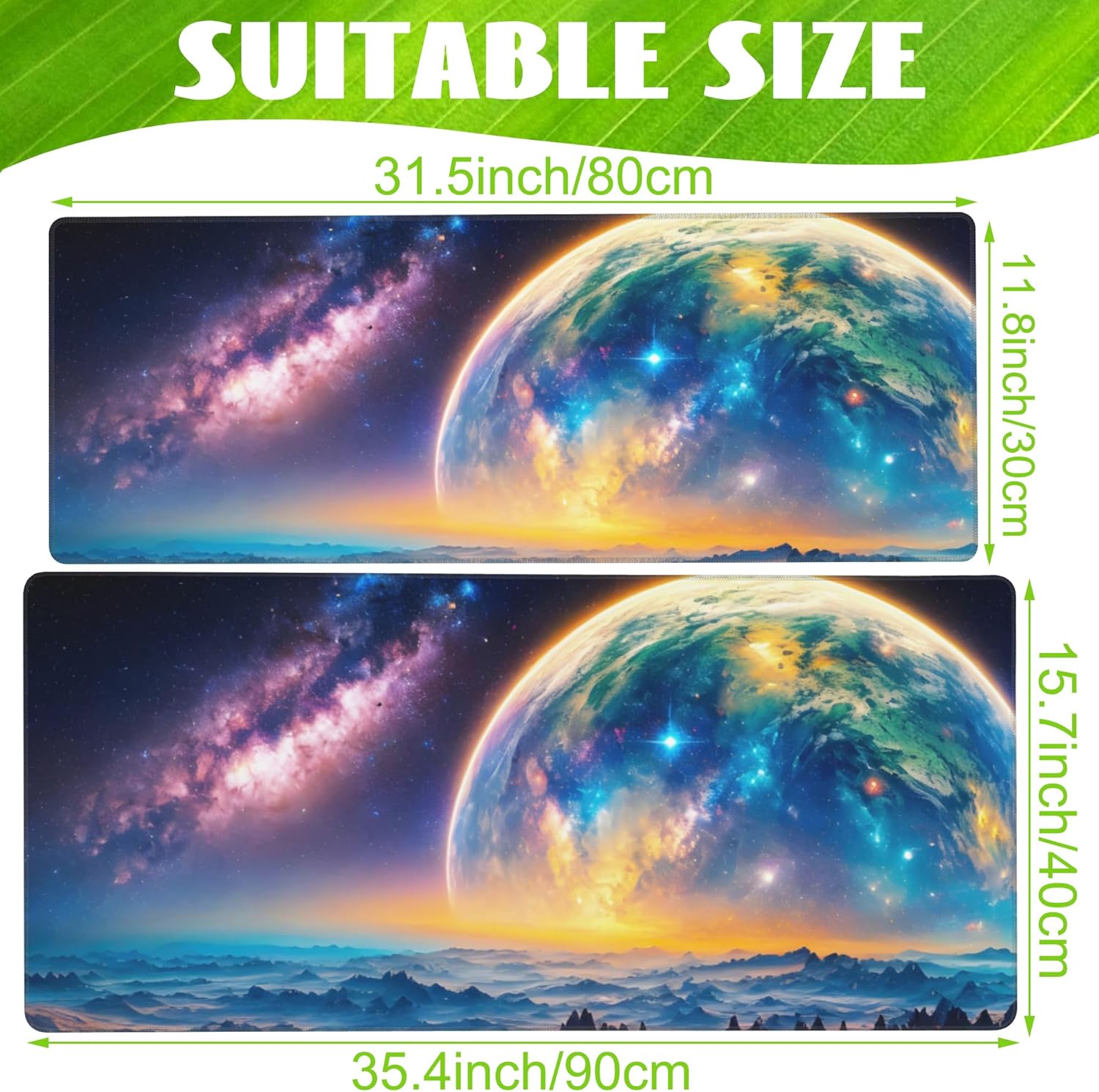 - 🖱️【Optimal Size for Comfort and Protection】: Our large gaming mouse pad is designed with your comfort in mind. With two different sizes, you can choose according to your desk needs. Moderate thickness and spacious surface can reduce the pressure on your hands and provide a comfortable typing experience. Accommodate your gaming mouse, full-size mechanical keyboard, and other desktop essentials effortlessly, maintaining a tidy and organized desk while enhancing your overall work efficiency.