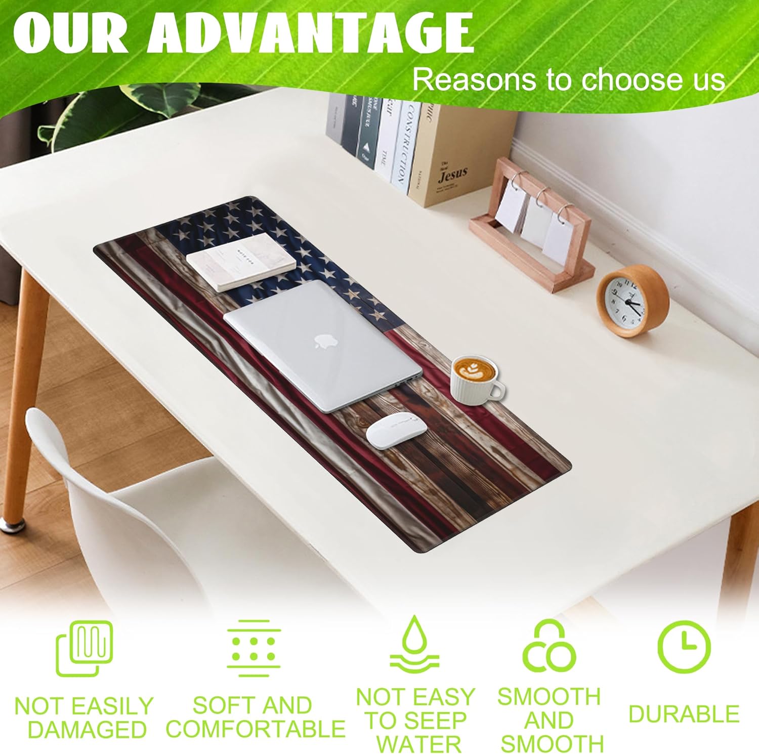 Large Gaming Mouse Pad for Desk,Wooden American Flag Desk Mat,Wooden USA Flag Desk Pad,Extended Big Computer Keyboard Mouse Pad with Non-Slip Base and Stitched Edge,31.5"x11.8"
