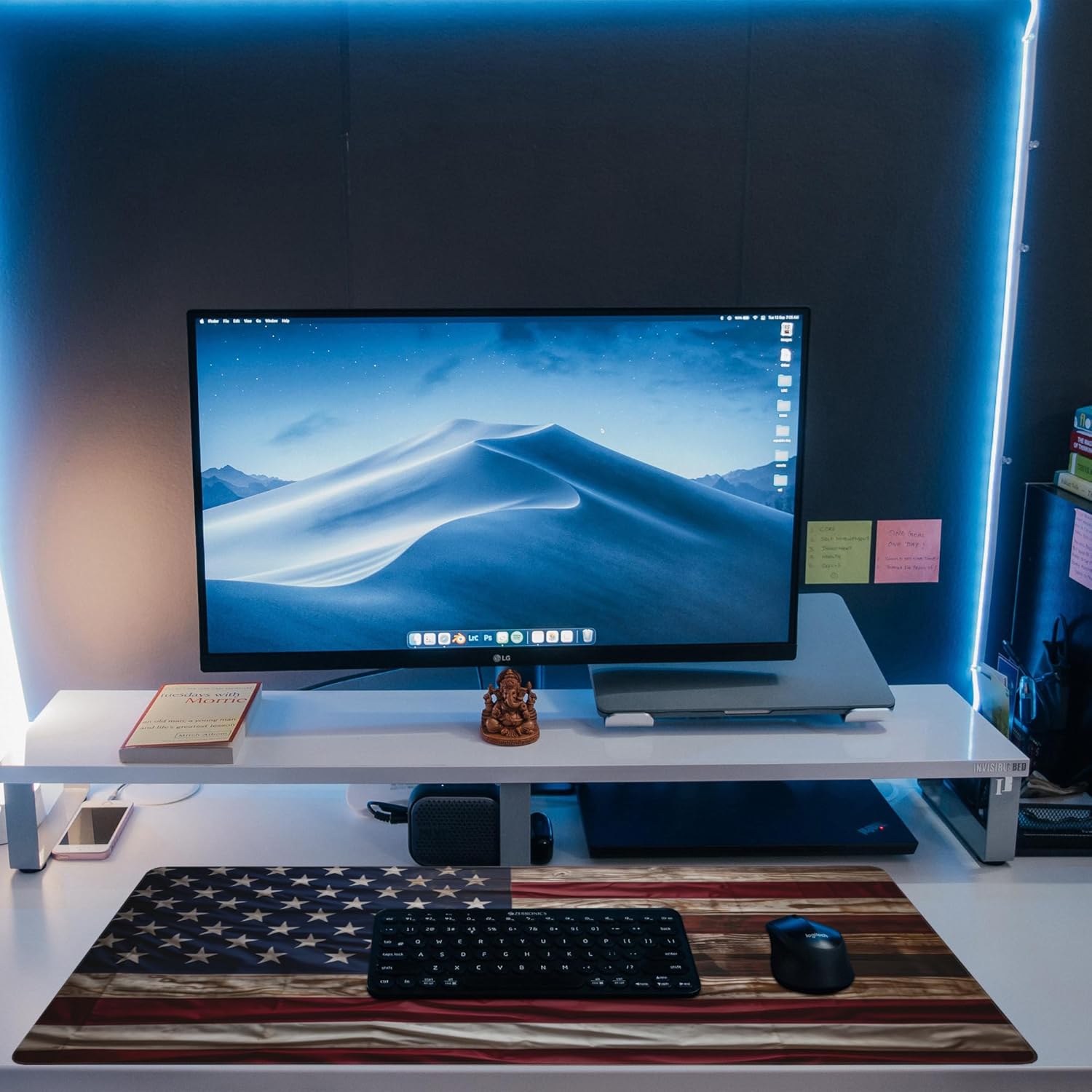 Large Gaming Mouse Pad for Desk,Wooden American Flag Desk Mat,Wooden USA Flag Desk Pad,Extended Big Computer Keyboard Mouse Pad with Non-Slip Base and Stitched Edge,35.4"x15.7"