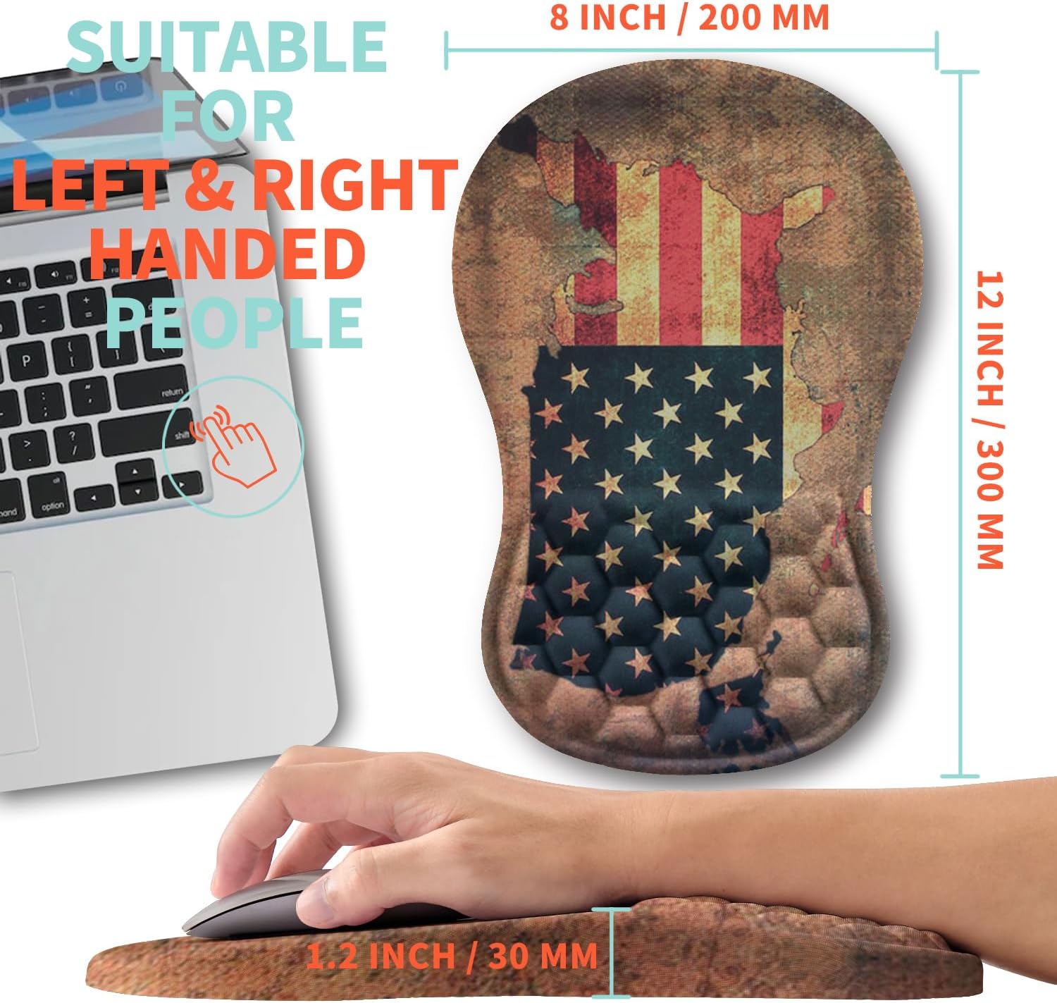 Ergonomic Mouse Pad Wrist Support with Memory Foam Massage Bulge, Carpal Tunnel Pain Relief Mousepad Wrist Rest for Mouse(12x8 inch, USA Flag Map)