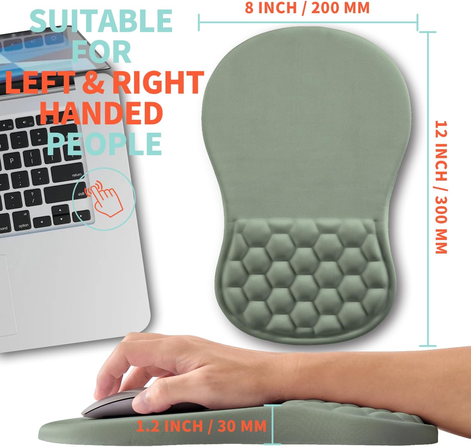 Ergonomic Mouse Pad Wrist Support with Memory Foam Massage Bulge, Carpal Tunnel Pain Relief Mousepad Wrist Rest for Mouse(12x8 inch, Light Green)
