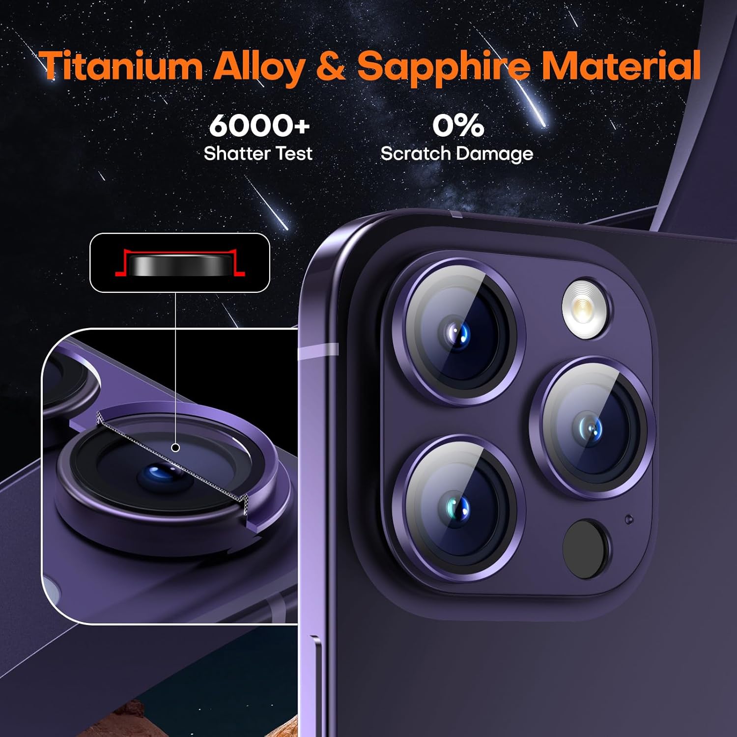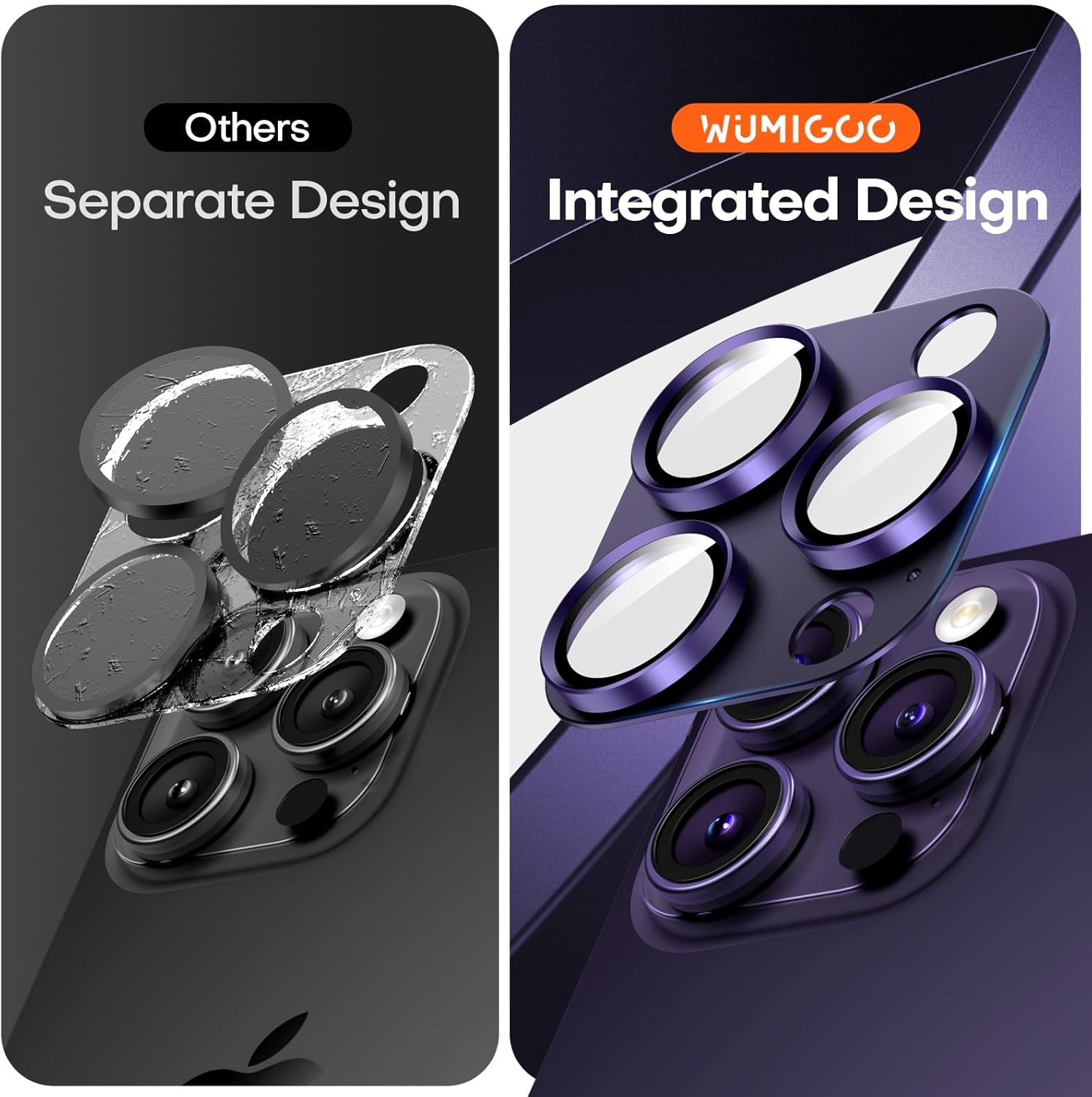 - [Upgraded Designed] Wumigoo camera lens protector for iPhone 16 Pro Max/16 Pro/15 Pro Max/15 Pro/14 Pro Max/14 Pro compared to other brands, features an integrated design that offers enhanced protection and never falls off. Titanium alloy with 99% transmittance sapphire glass combination defends every angle of impact and crack issues. Electroplating AF oiled technology shows telephoto and macro shots exhibit their original colors.
