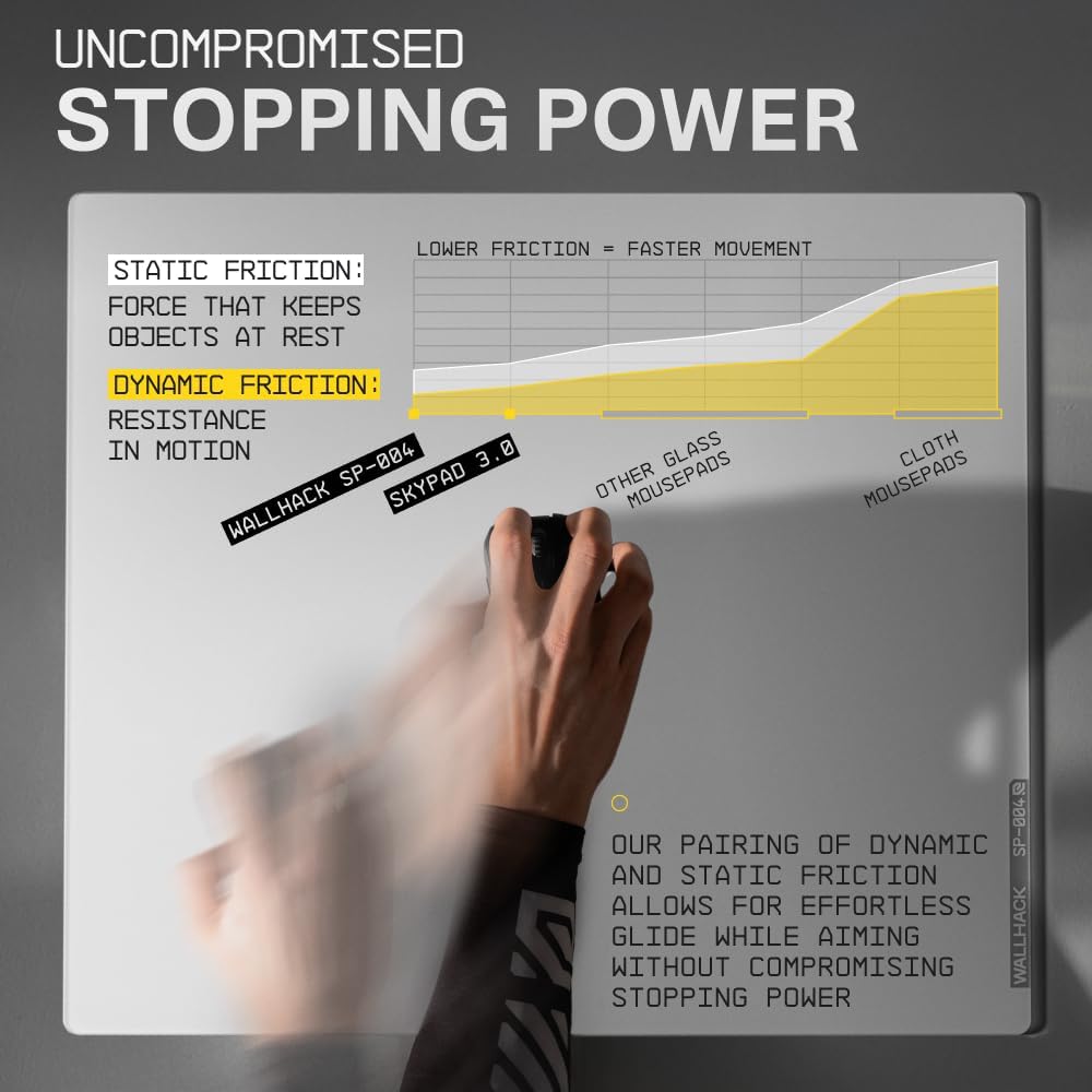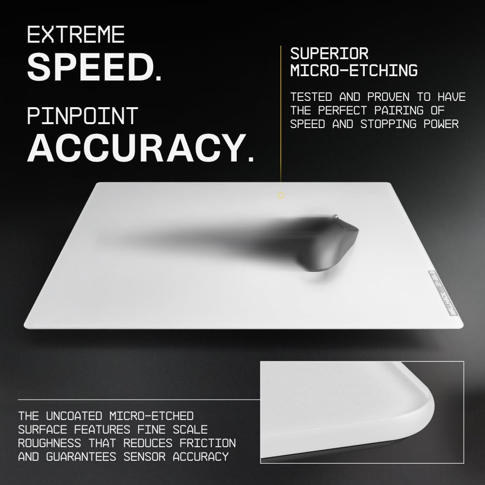- A NEW AIMING EXPERIENCE: The uncoated micro-etched surface provides extremely low friction with great stopping power for unparalleled synergy between fast and controlled movements. A novel experience only possible on a glass pad.