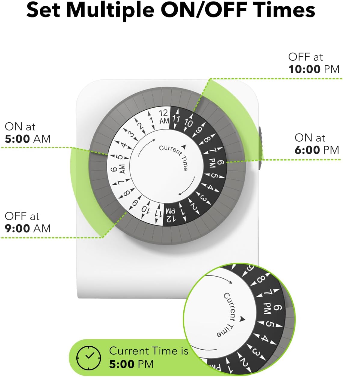 - 【Automate Your Day, Every Day】 Program up to 48 on/off settings daily in 30-minute intervals. Once set, the timer repeats your schedule every day without the need for resetting. Eliminate the hassle of constantly flipping switches or plugging and unplugging devices.