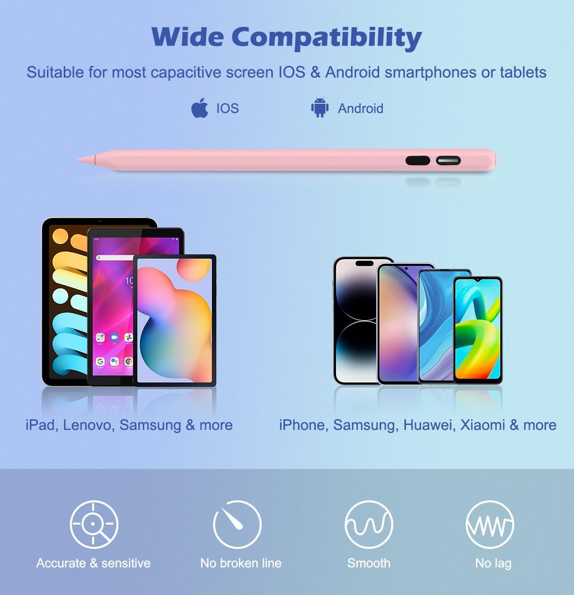- 【Wide Compatibility】: This universal touch screen stylus pen is compatible with most touch screen devices including iPad, iPhone, Samsung, Huawei, Xiaomi, Lenovo, and other capacitive screen IOS & Android smartphones or tablets. Note: Does not support Amazon Fire, Kindle, Microsoft, Chromebook or EMR screens.