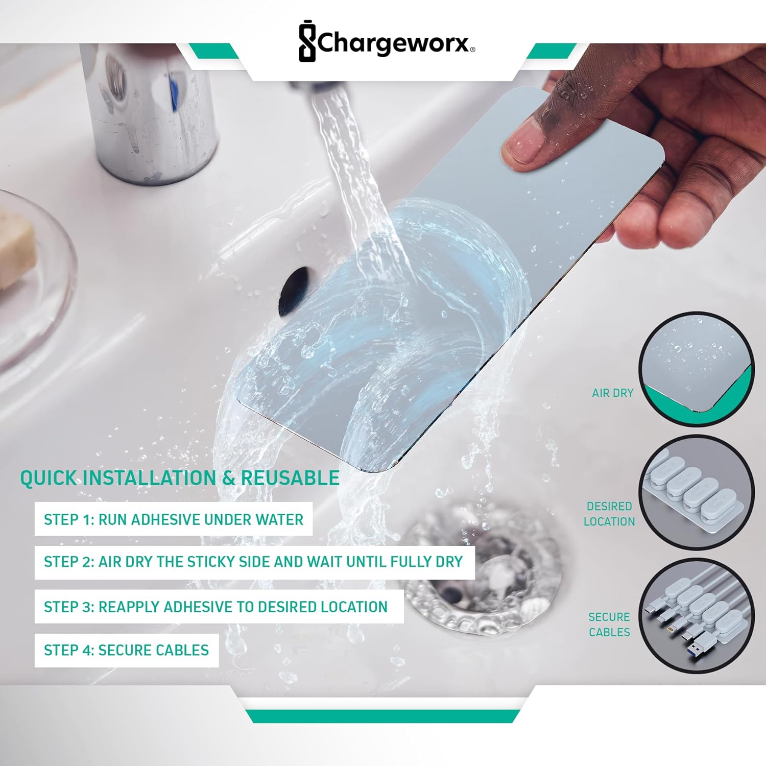 Magnetic Cable Clips [5-Pack] – Chargeworx Cord Organizer for Desk, Nightstand, Car, Wall – Strong Adhesive Wire Holder for USB-C, Lightning, Micro-USB – Tangle-Free, Snap-On, Easy Cable Management