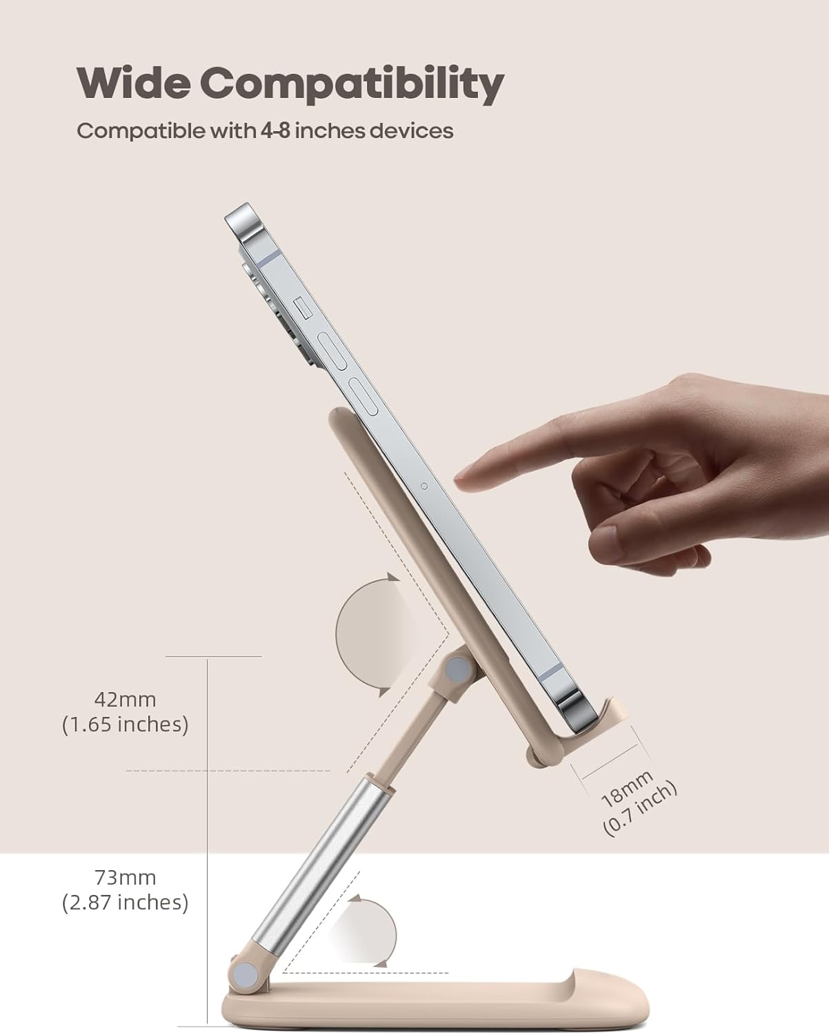 Lamicall Khaki Phone Stand for Desk - Cell Phone Holder Khaki Desk Accessories Desktop Office Must Have Compatible with iPhone, 4-8'' Smartphone
