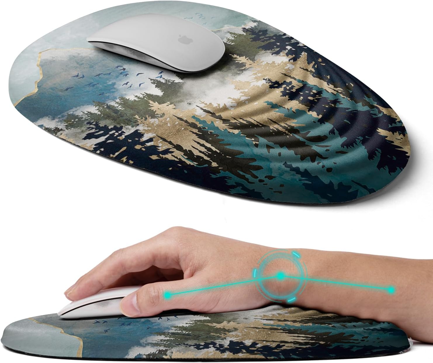 Ergonomic Mouse Pad with Wrist Rest Support, Memory Foam & PU, Forest Sunrise