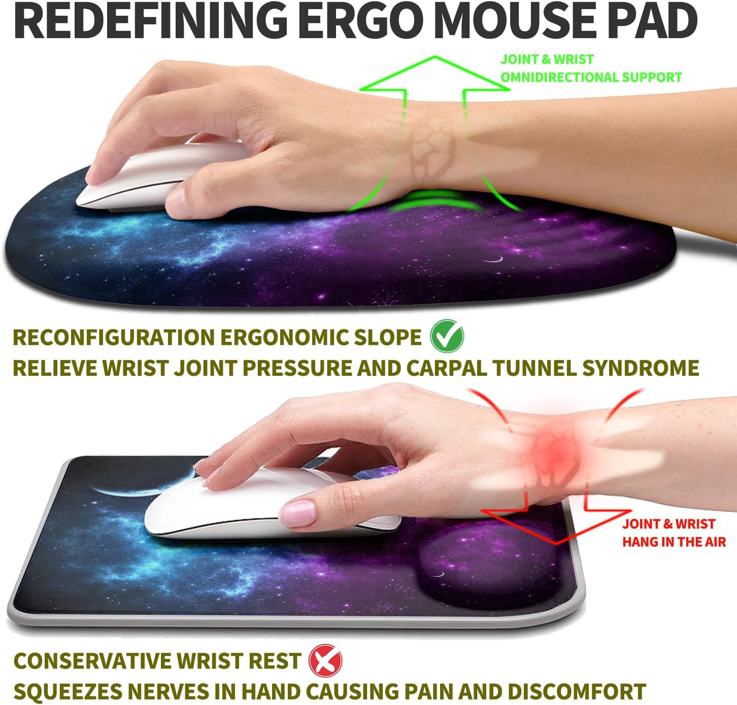 Hokafenle Ergonomic Mouse Pad Wrist Support, Terraced Slope Carpal Tunnel Wrist Pad for Mouse with Unibody Memory Foam, Wrist Rest Pain Relief Mousepad (Galaxy, 11.8x7.9 in)