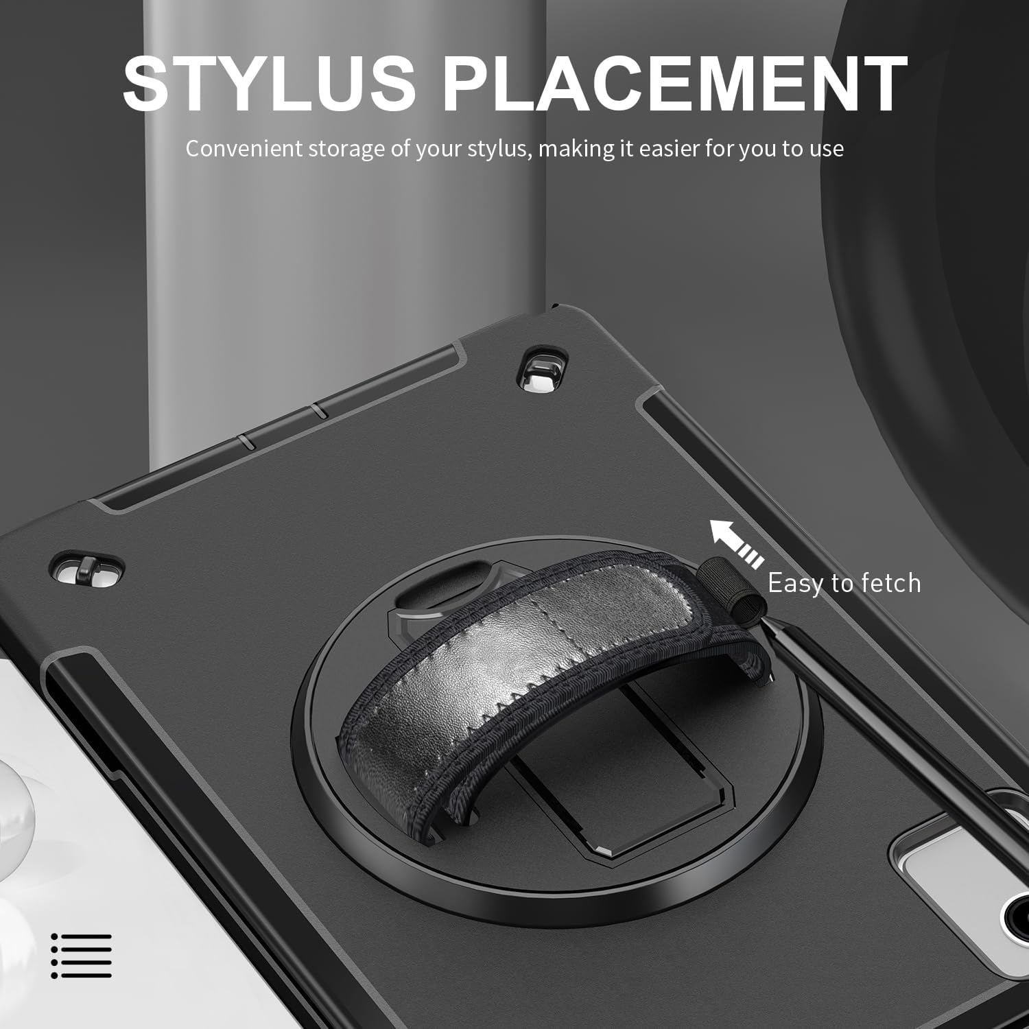 Junfire Protective Case for Lenovo Tab M11/Tab K11 LTE 11-inch 2024, Shockproof Rugged Case with 360°Rotating Kickstand/Hand Strap/Shoulder Strap/Pencil Holder for TB-330FU/330XU-Black