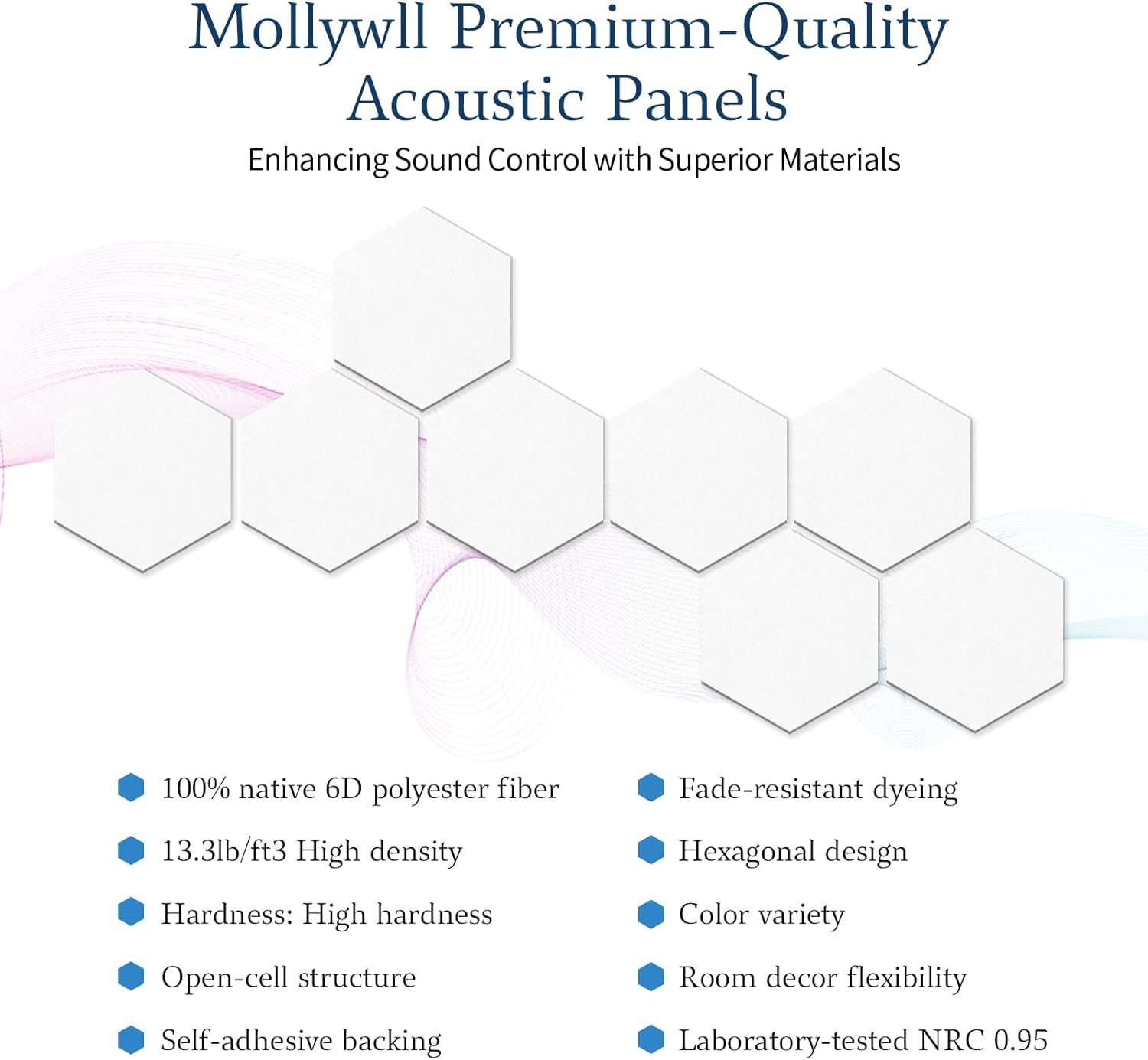 Mollywell Hexagon Acoustic Panels, High Density, Soundproofing, Decorative Noise Reduction Felt Wall Tiles for Ceilings, Home Office & Gaming Room (White), 12x10x0.4 Inch