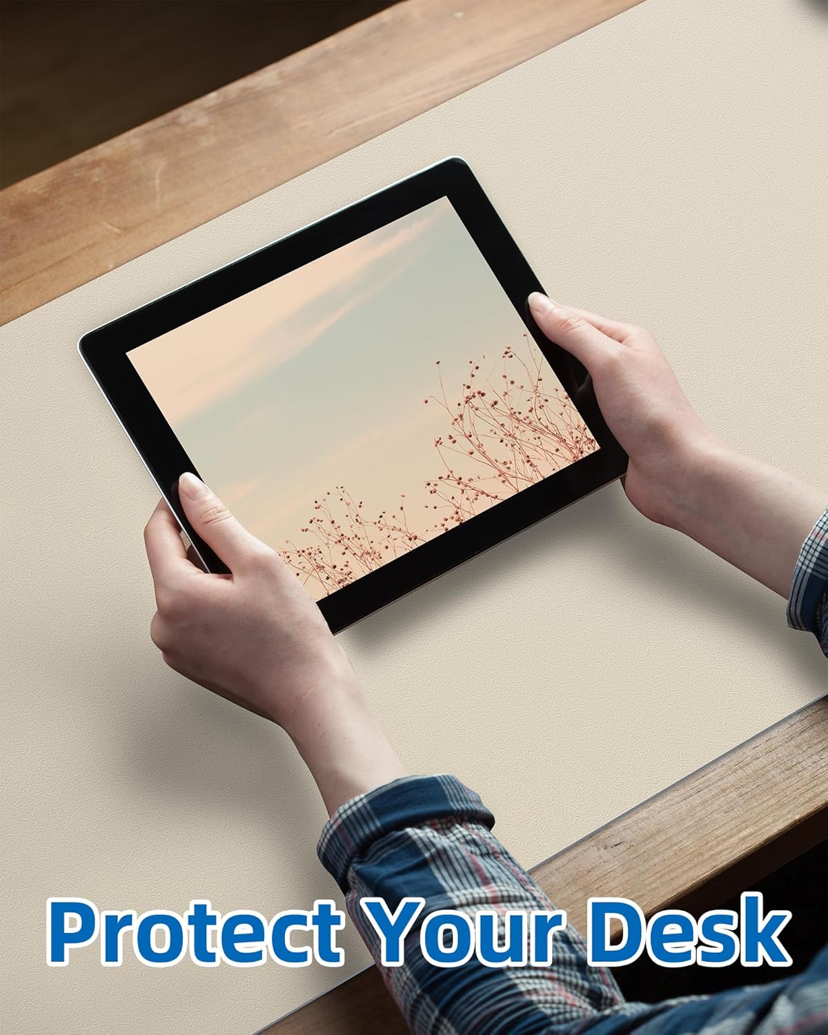 AFIING Leather Desk Pad Protector, Mouse Pad, Office Desk Mat, Non-Slip PU Leather Desk Blotter, Large Desk Mat, Waterproof Keyboard Mat for Office/Home/Decor (Beige, 55" x 17")