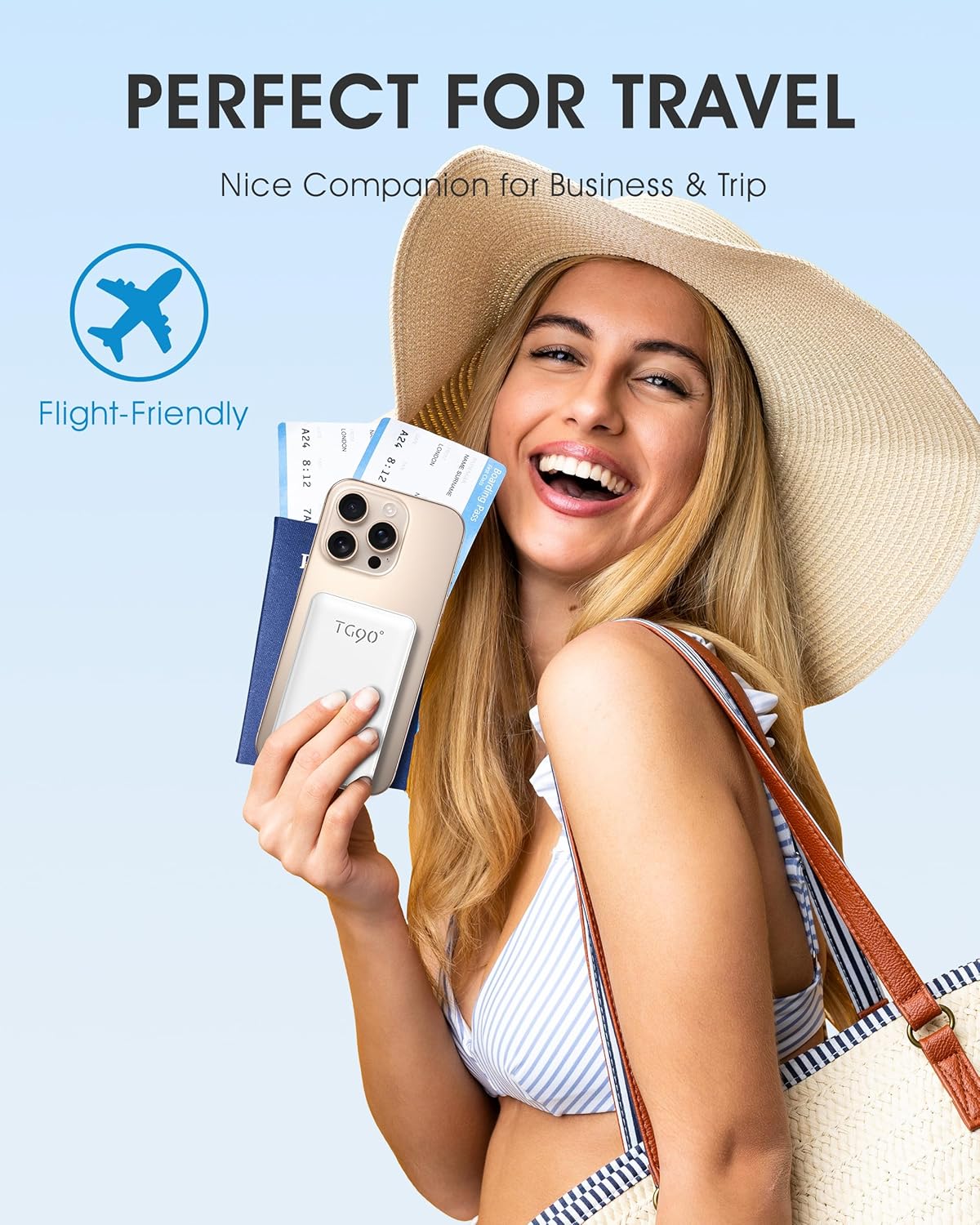 TG90° Portable Charger with Built-in Foldable AC Wall Plug and Cables,5000mAh Slim Power Bank USB C Battery Pack,3 Outputs Pocket Friendly Battery Charger Compatible with iPhone Android Smart Devices