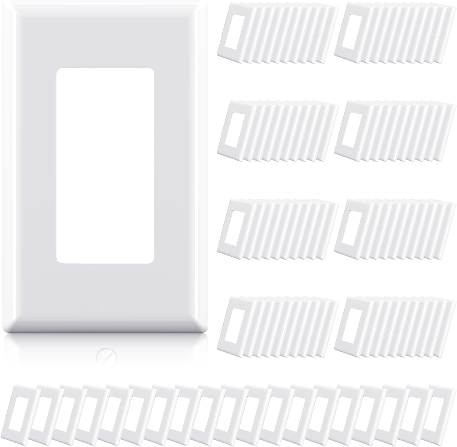 ELEGRP 1-Gang Screwless Decorator Wall Plates, Standard Size Unbreakable Thermoplastic Faceplate Cover for Decorator Receptacle Outlet Switch, UL Listed (100 Pack, Glossy White)