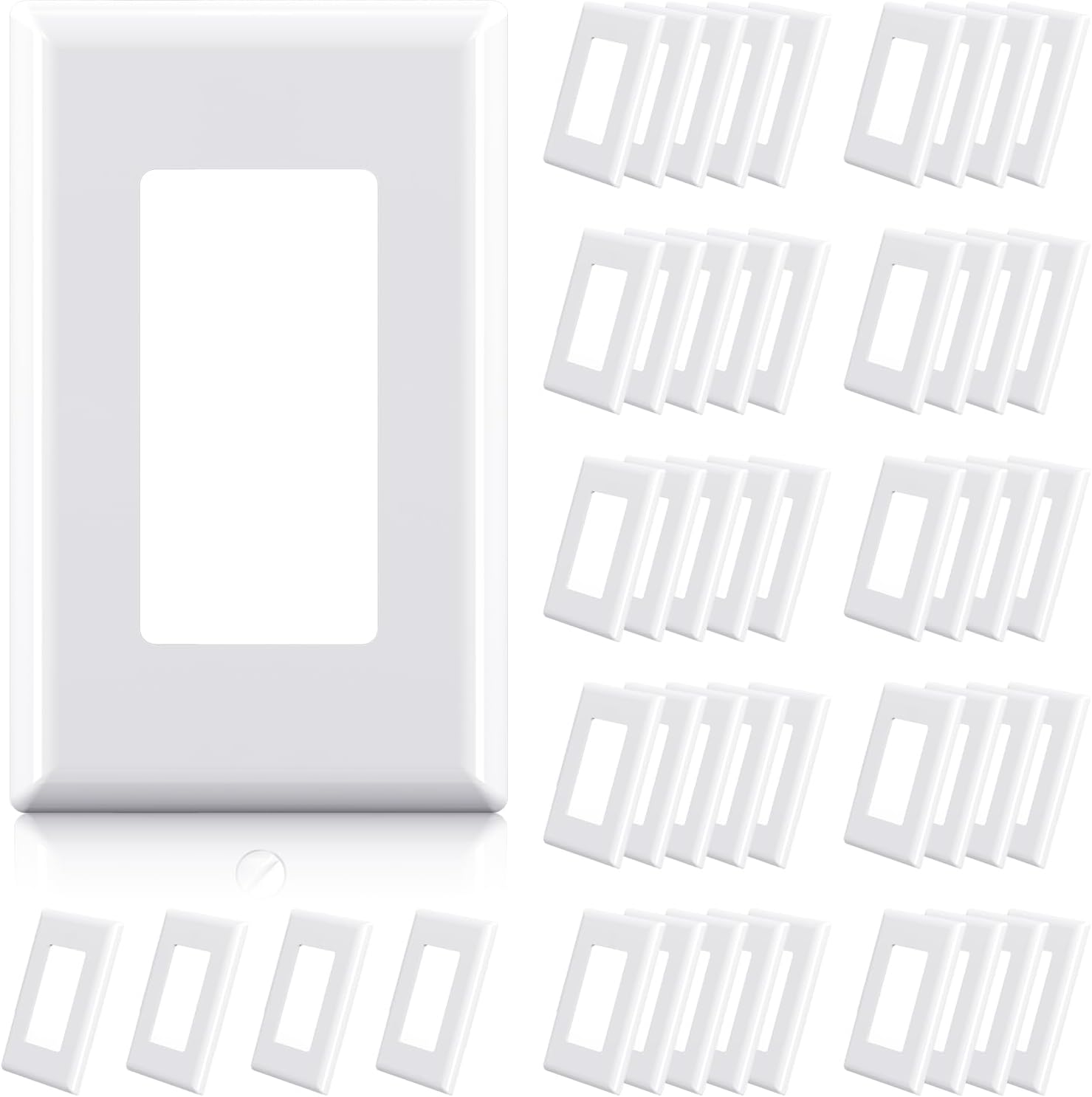 ELEGRP 1-Gang Screwless Decorator Wall Plates, Standard Size Unbreakable Thermoplastic Faceplate Cover for Decorator Receptacle Outlet Switch, UL Listed (50 Pack, Glossy White)