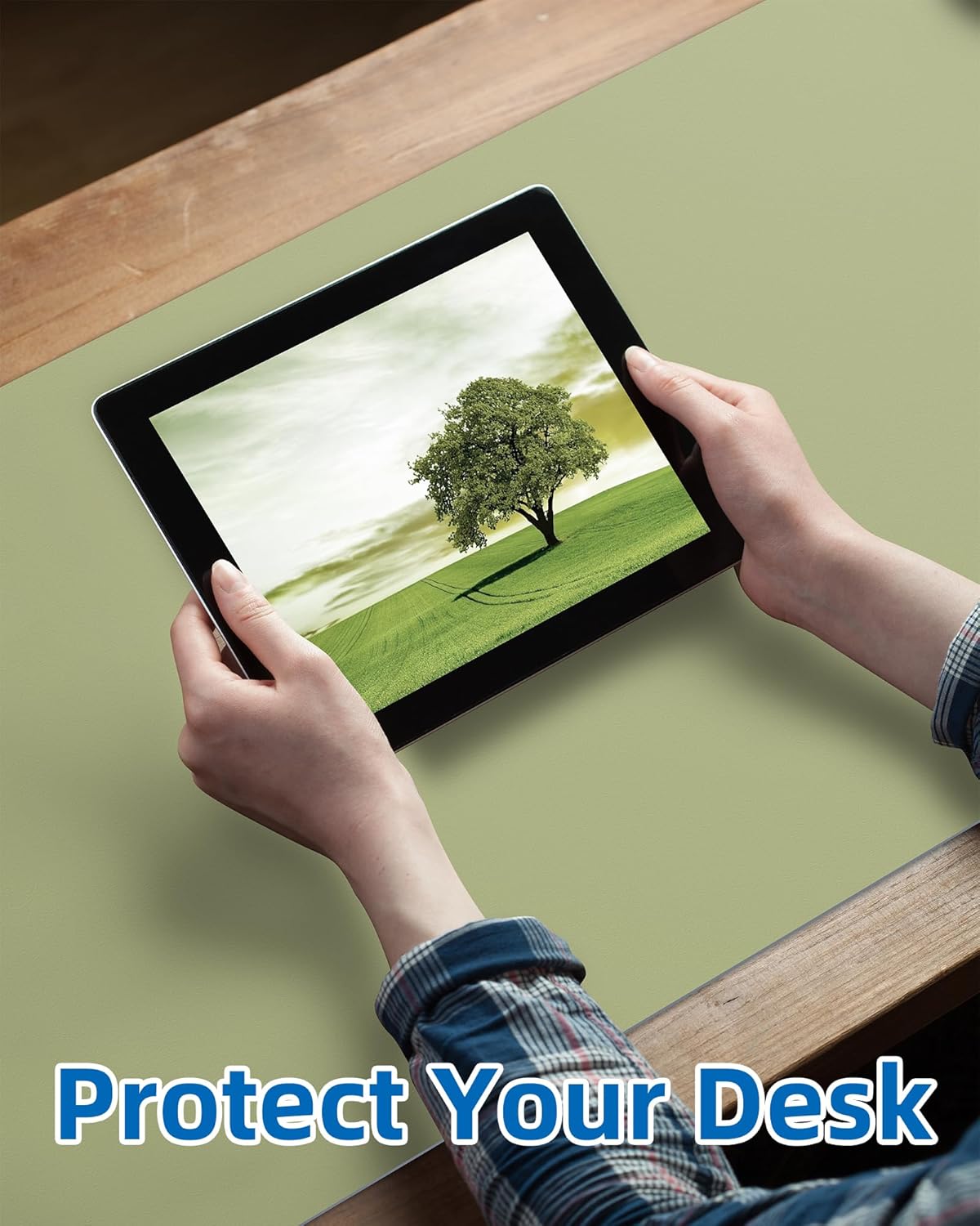 AFIING Leather Desk Pad Protector,Mouse Pad,Office Desk Mat, Non-Slip PU Leather Desk Blotter,Large Desk mat,Waterproof Keyboard mat for Office/Home/Decor (Olive Green,55"" x 17"")