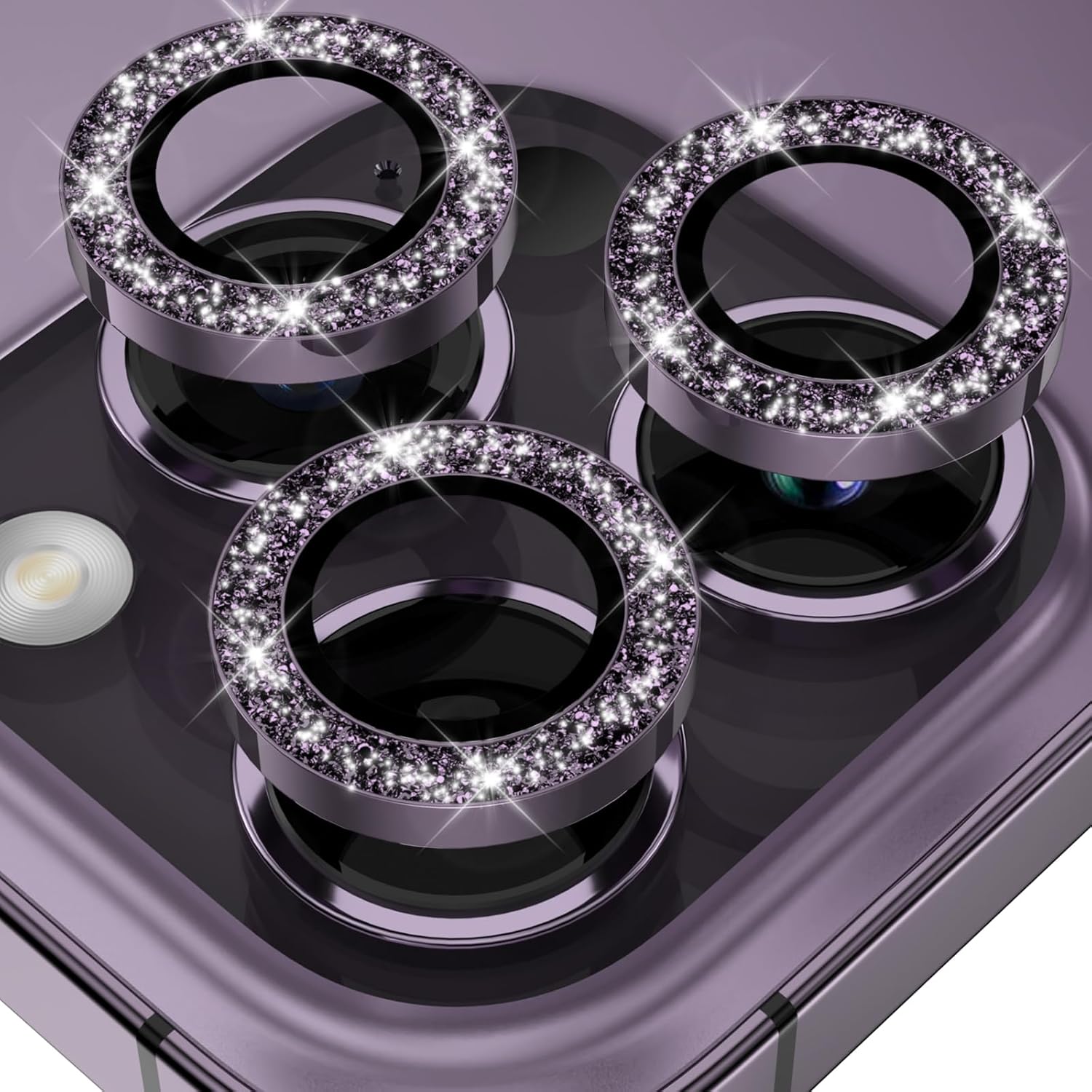 YWXTW Designed for iPhone 14 Pro/iPhone 14 Pro Max Camera Lens Protector Bling, [New Glitter Design] Individual Metal Tempered Glass Camera Cover Accessories Case Friendly, 1 Set (Purple Glitter)