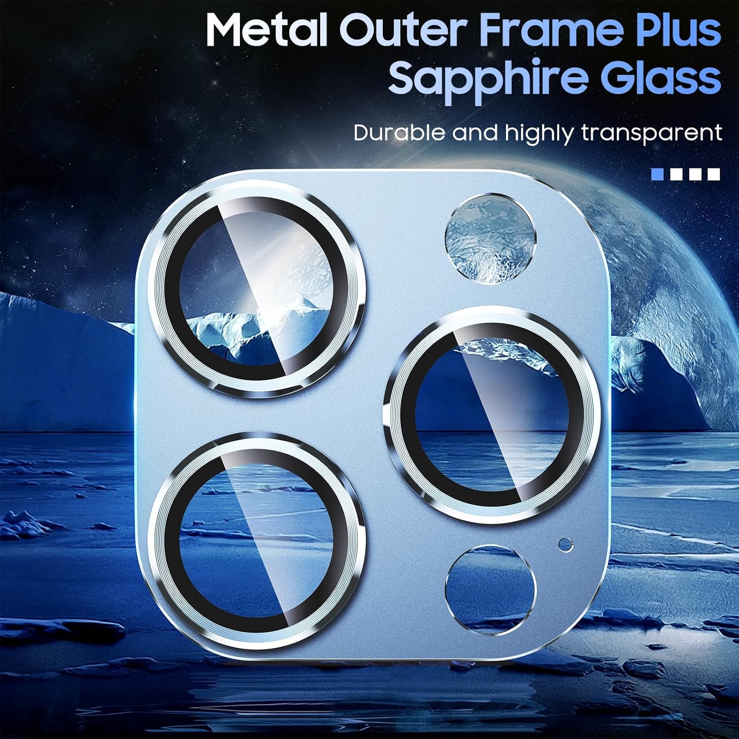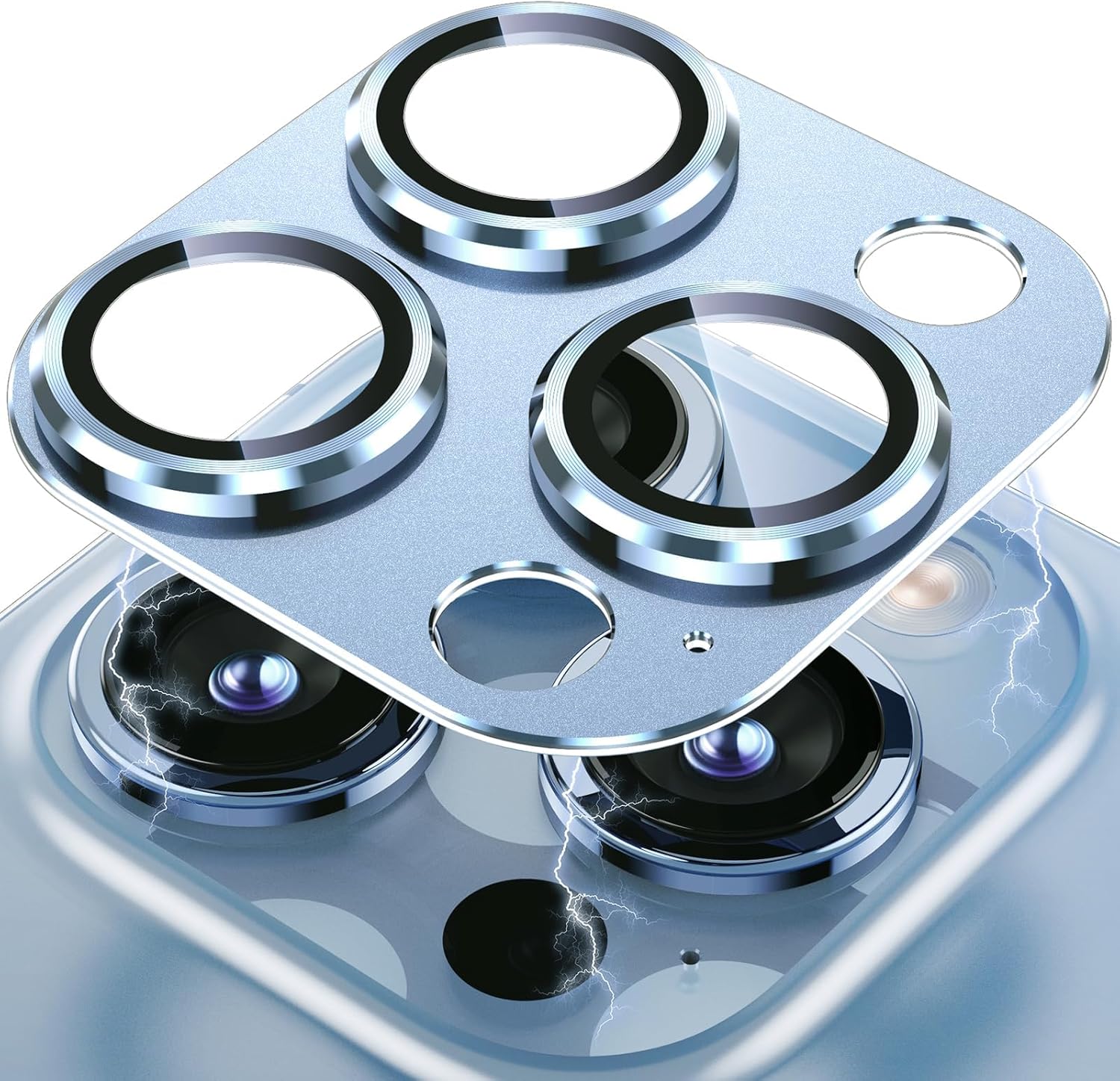 Uyiton for iPhone 13 Pro/iPhone 13 Pro Max Camera Lens Protector, [Strong Adsorption] [Drop Protection] Metal Ring Tempered Glass Rear Camera Screen Cover - Blue