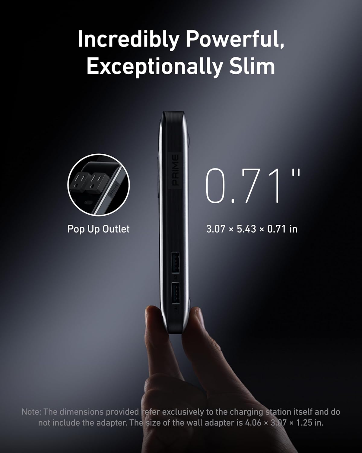 - Minimal Space, Maximum Power: This ultra-compact charging station measures only 3.07 × 5.43 × 0.71 inches and includes a pop-up outlet for easy access.