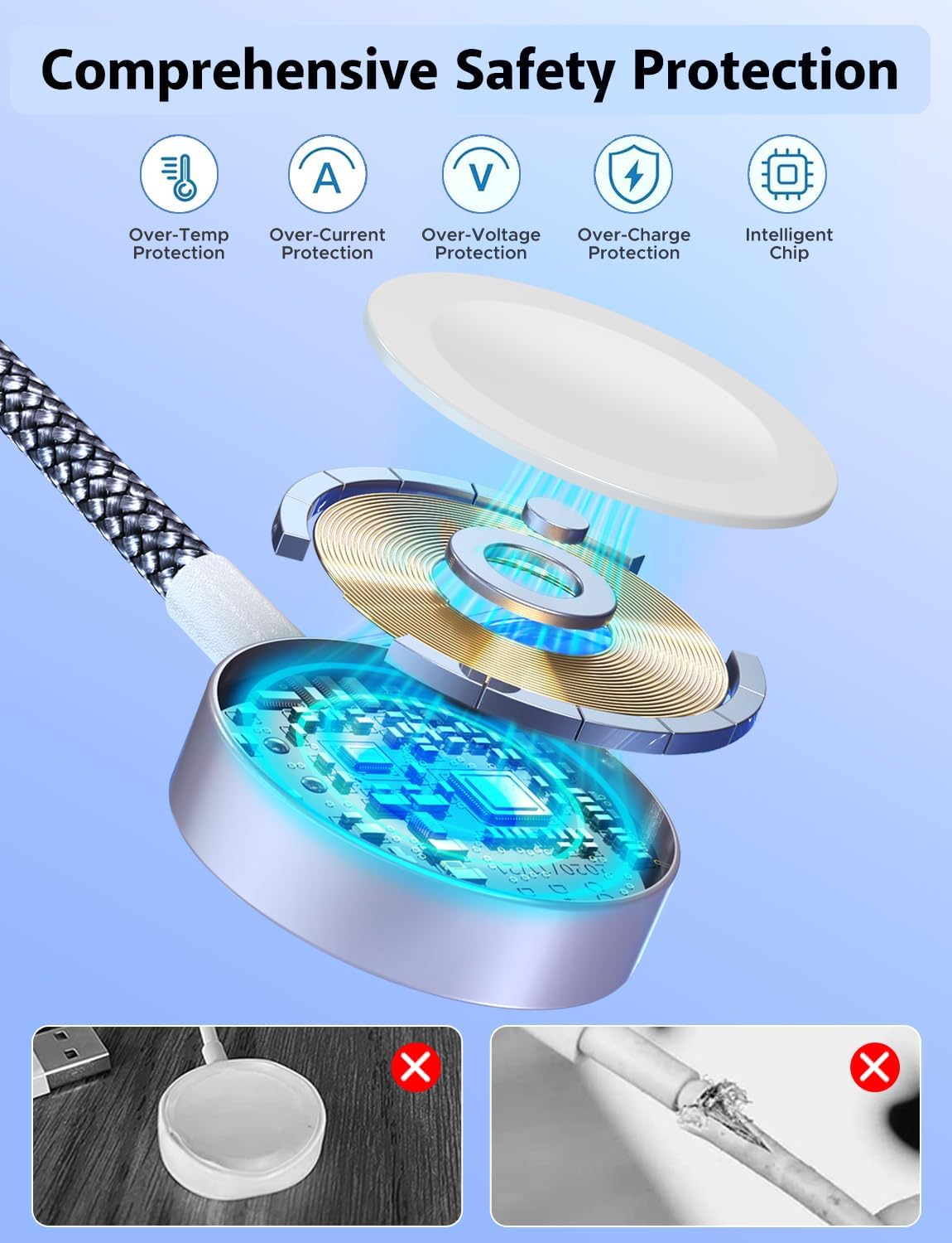 - 🔹【Travel Essentials & 8.66inch Length】With lightweight and portable design, this 8.66in 3-in-2 charging cable is fit in your travel bag take it on the go or simply use at home and office, charge your Apple watch and iPhone anywhere anytime