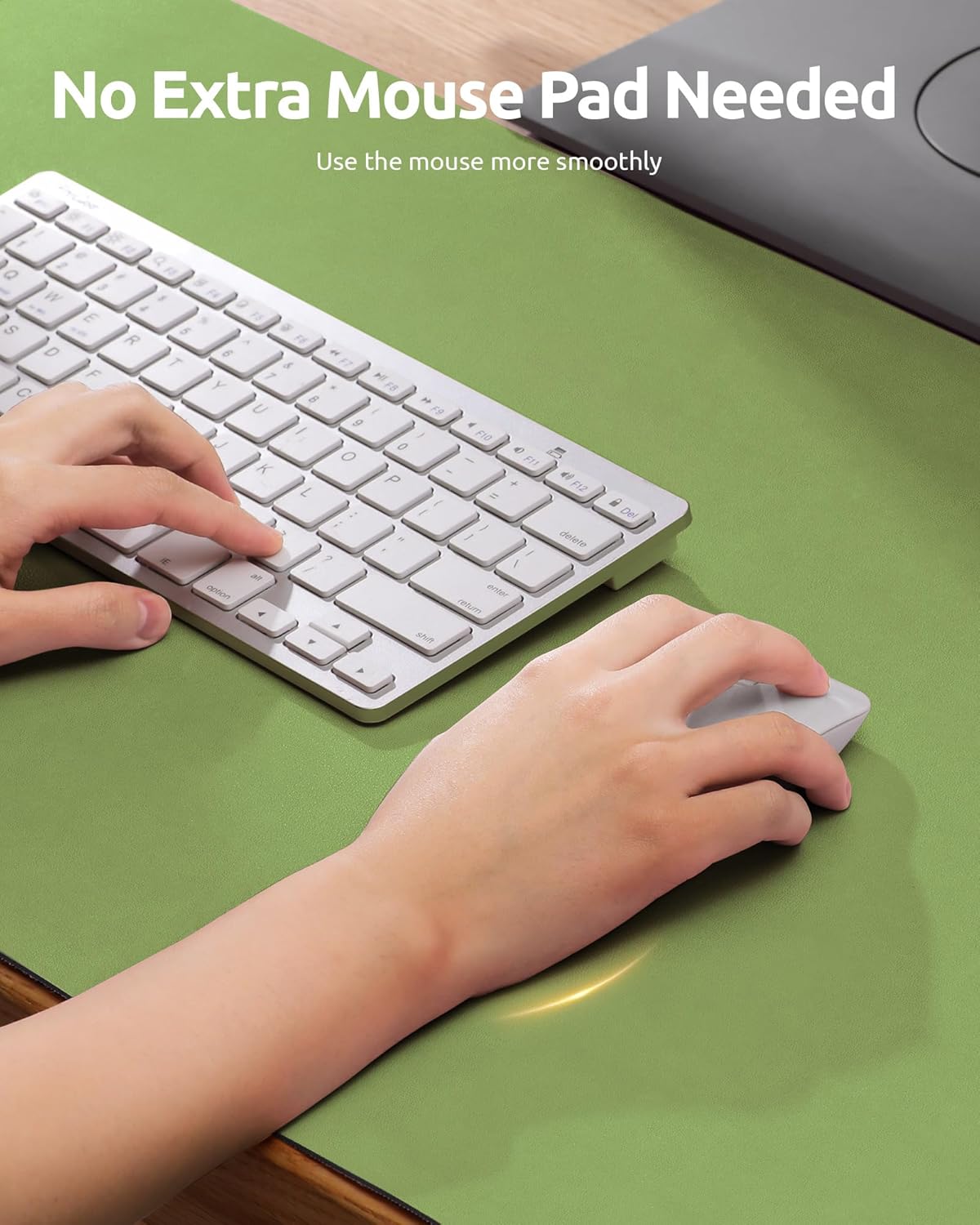 YSAGi Leather Desk Protector, Office Mat, Large Mouse Mat, Non-Slip PU Leather Blotter, Laptop Pad, Waterproof Writing Pad for Office and Home (Leaf Green, 31.5" x 15.8")