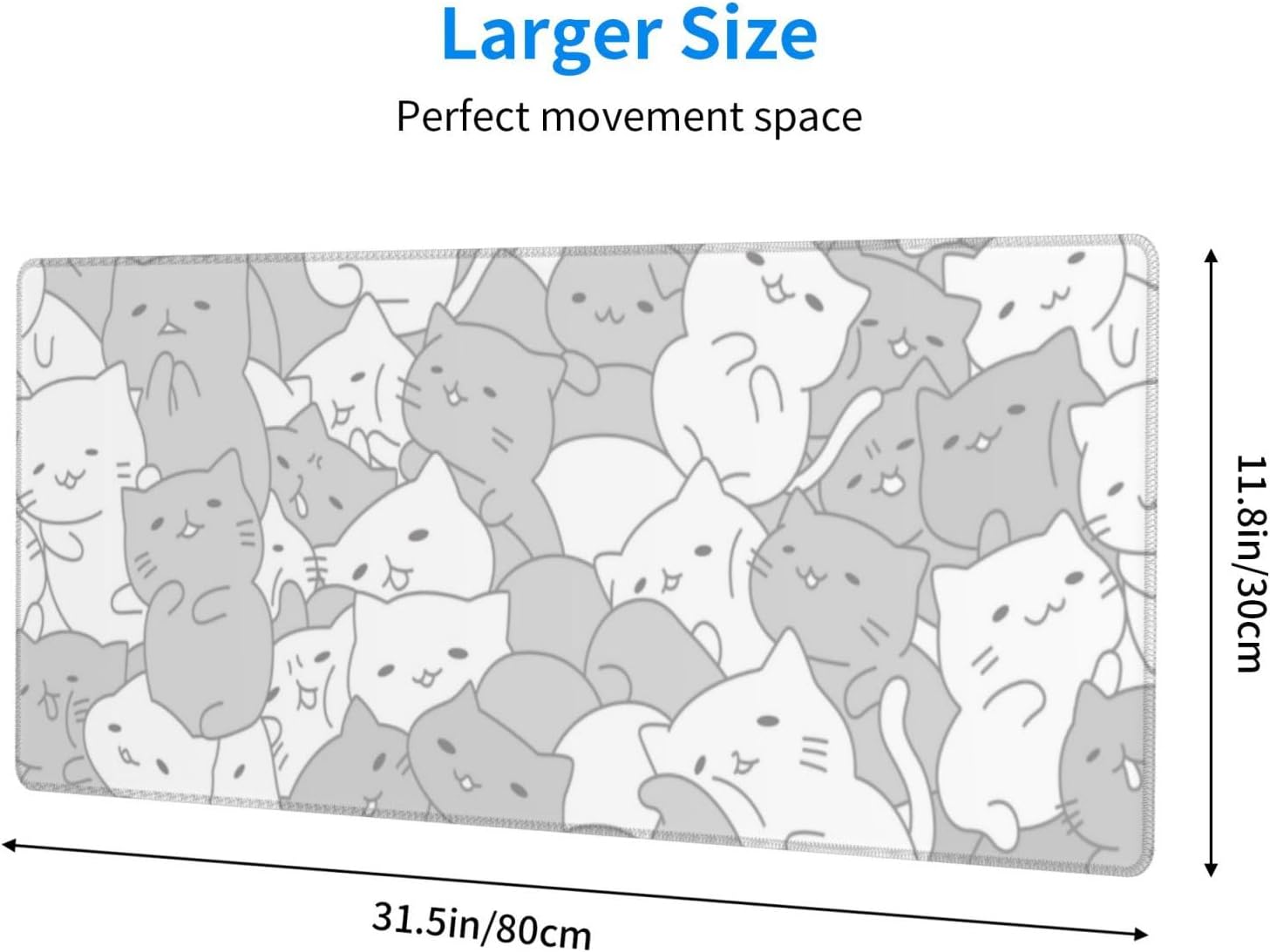 White Kawaii Cats E-Sport Mouse Pad Large Desk Mat Non-Slip Rubber Base Stitched Edge Keyboard Mouse Pad for Office Home E-Sport Computer Laptop, 31.5×11.8 Inches