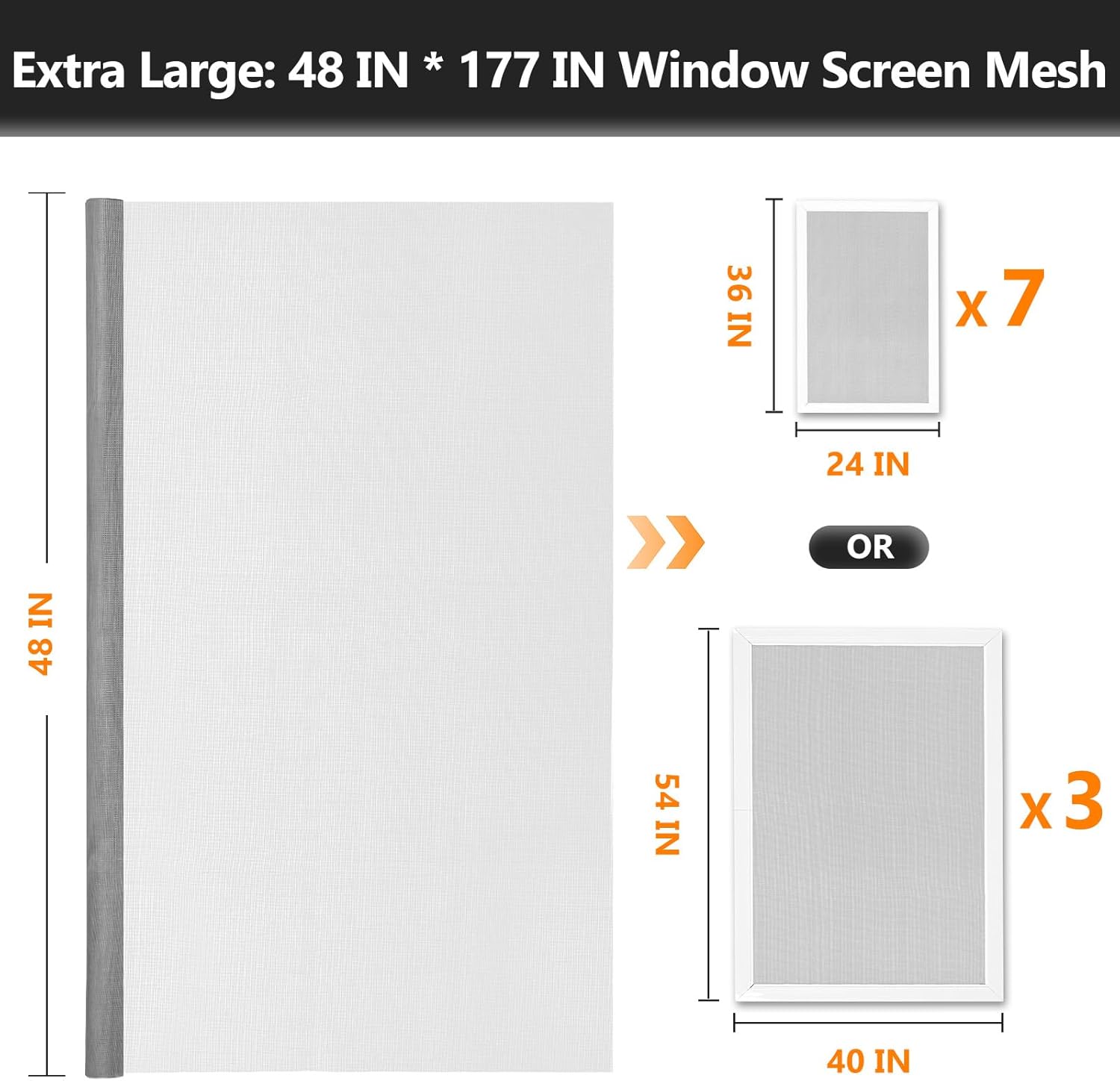 - Extra Large Screen Mesh: The window screen mesh is sufficient to replace multiple standard-sized windows. Made of durable fiberglass material, it can be easily cut and is wear-resistant, allowing you to DIY as desired