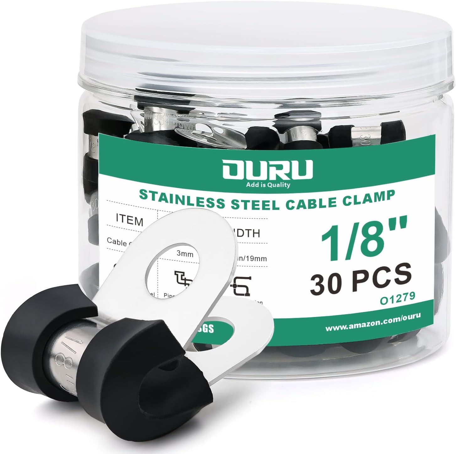 - OURU Insulated Cable Clamps Kit βThe stainless steel hose cable clamps box set contains 30PCS 1/8" p-clamps.Fit for 6M( 1/4 inch) screw bolt to through the screw hole