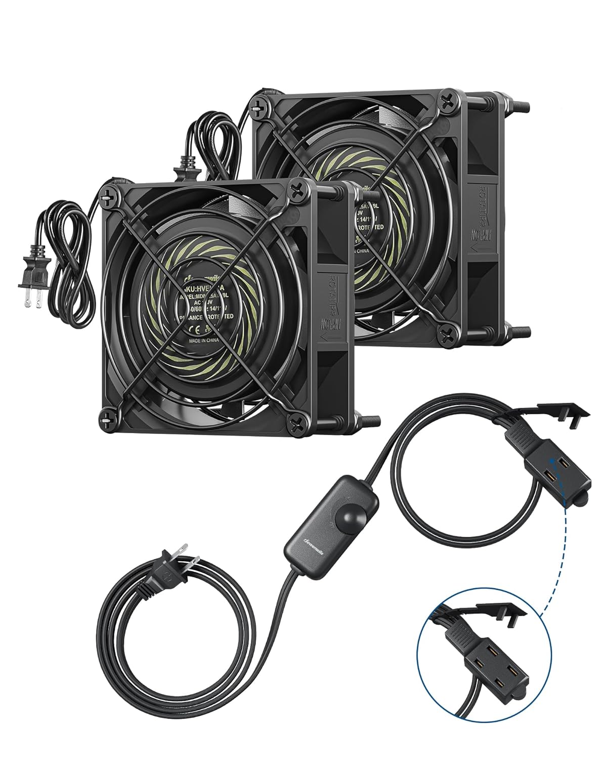 DEWENWILS 120V AC Quiet Muffin Fan, 80mm×25mm Waterproof Case Fan Cooling Fan with Speed Control, UL-Certified for DIY Cooling Exhaust Ventilation, Flame-Resistant, 2 Pack