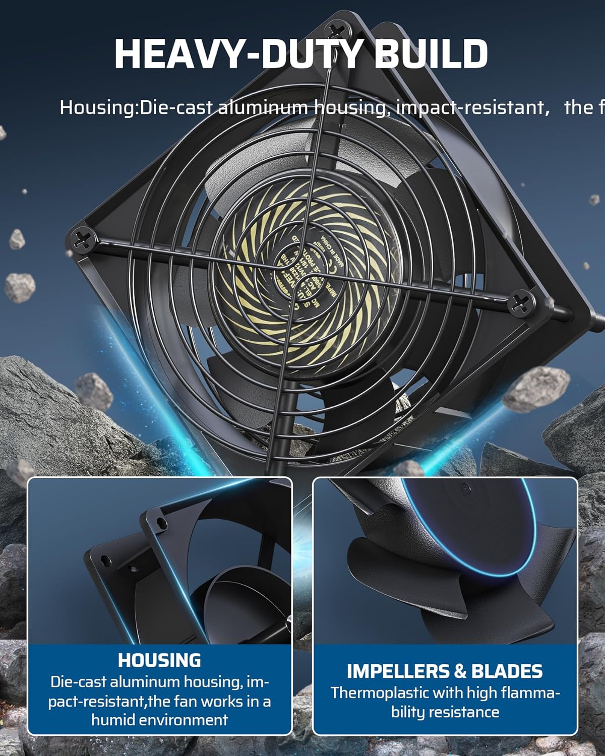 - [Robust & Flame-Resistant] Built with a die-cast aluminum shell, this exhaust fan features impeller blades crafted from thermoplastic with high flame resistance; it can be used in wet environments ( note: avoid getting the speed controller and plug wet)