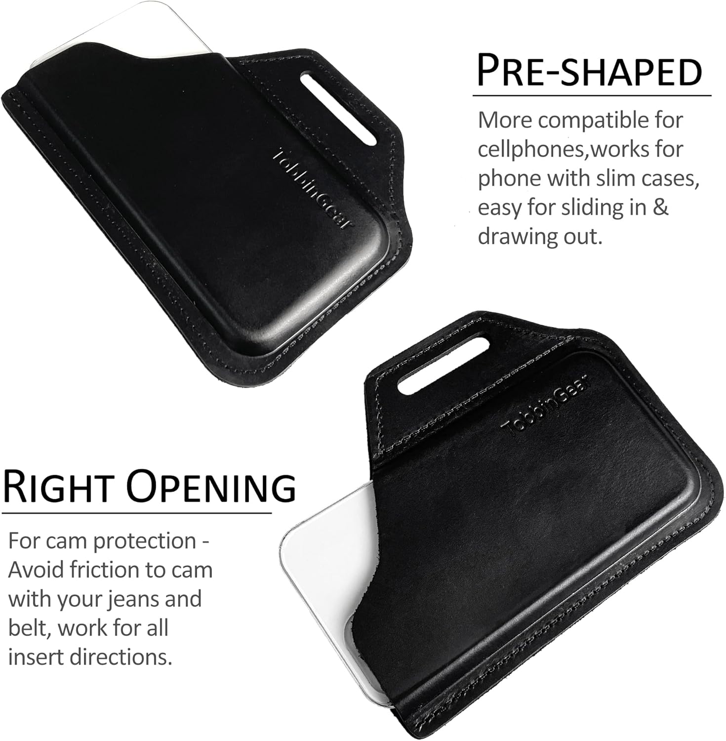 - 【 Pre-shaped 】With this feature, this phone holster will save your time to stretch and break it in, you can easily insert your phone and remove it by only one hand. Fits for phones with slim cover.