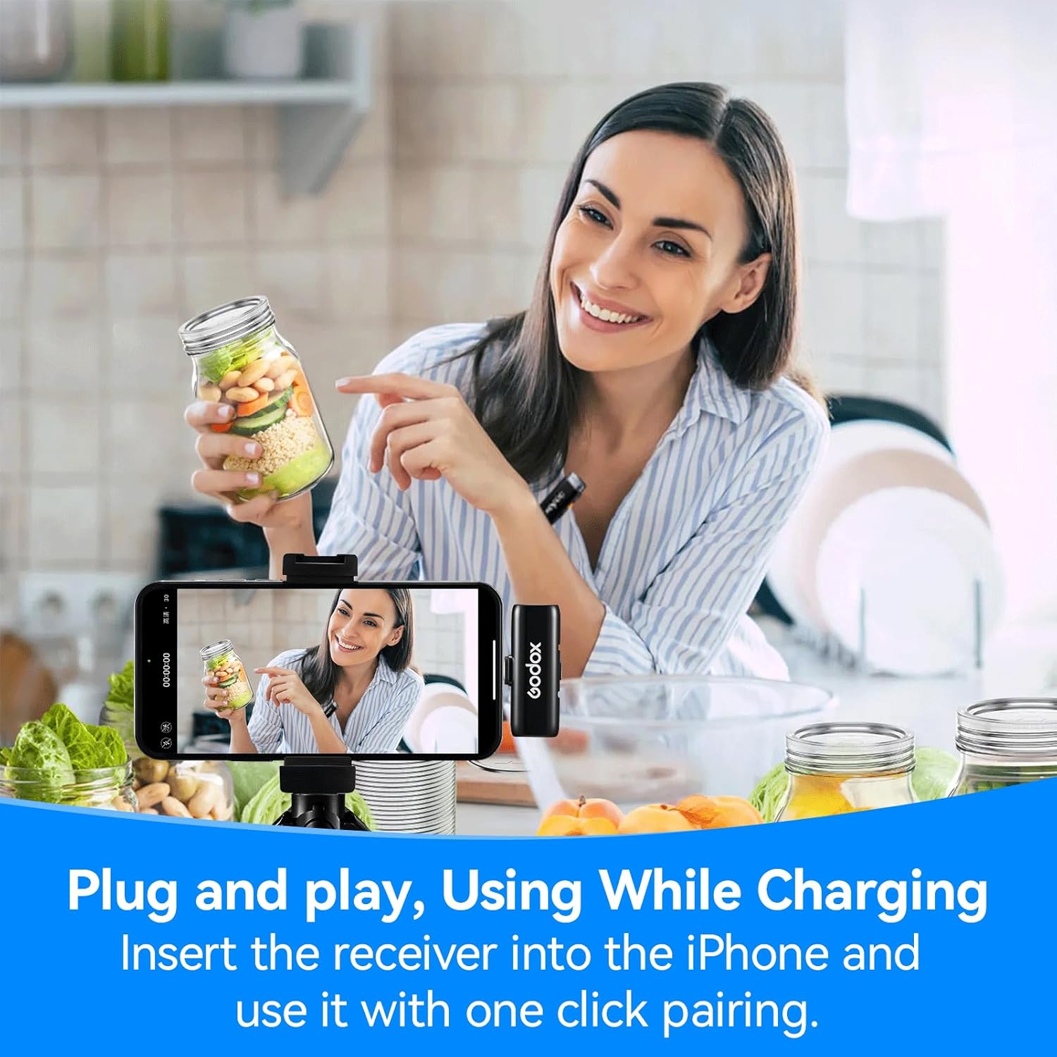 - 【Intelligent Noise Reduction】Godox microphone for iphone features a cutting-edge DSP noise cancellation chip, which provides effective environmental noise cancellation, even in windy outdoor or noisy commercial streets, it can provide clear sound.