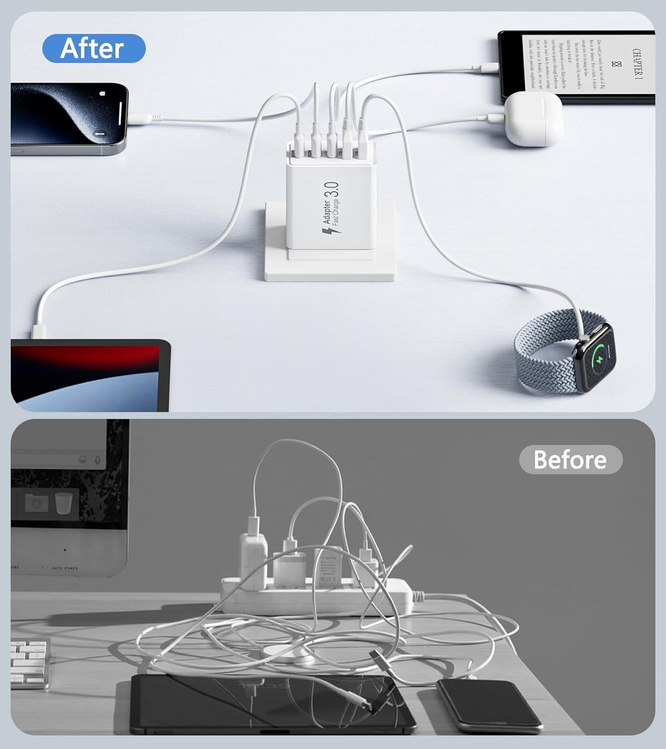 - Compact and Portable:The 5-port charging cube boasts an incredibly compact size that enhances portability. All of this power is housed in a pocket-friendly compact body wherever the journey takes you. Perfect for home, office and on the go. Is the best significant other on the go. We offer this 50W 5-port USB C wall charger (cable not included)