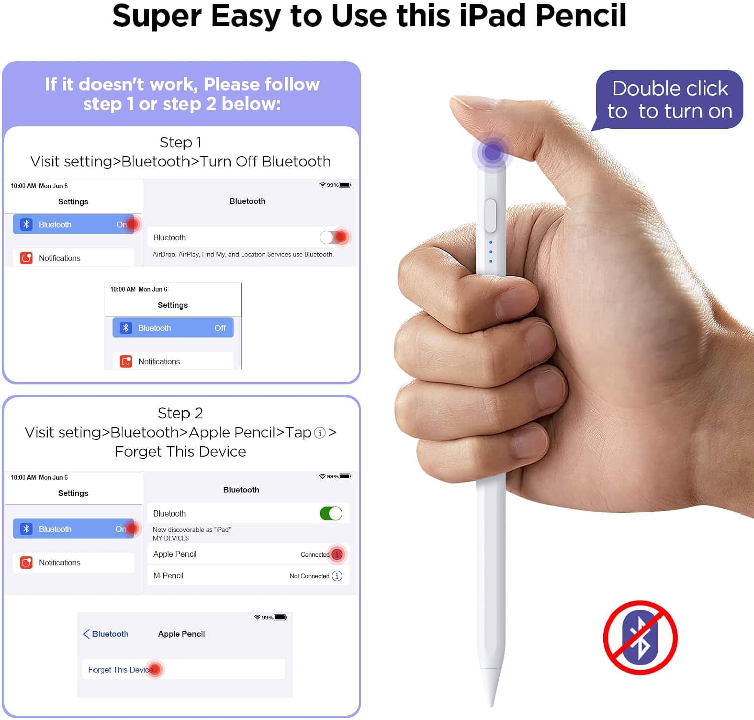 - ăFor iPad 2018-2025ăThis ipad pencil is compatible with Apple iPad 2018-2025. This Pencil for iPad 10th /9th /8th /7th /6th; iPad Pro 11 inch /12.9 inch; iPad Mini 5th /6th; iPad Air (5th /4th /3rd); New iPad Pro 2024 11 inch &13 inch (M4); New iPad Air 2024 11 inch &13 inch (M2). And it's easy to use! No need to connect to Bluetooth. Double-click the top touch control to turn it on. This iPad pen is magnetically adsorbed and can be attached to the iPad when not in use.