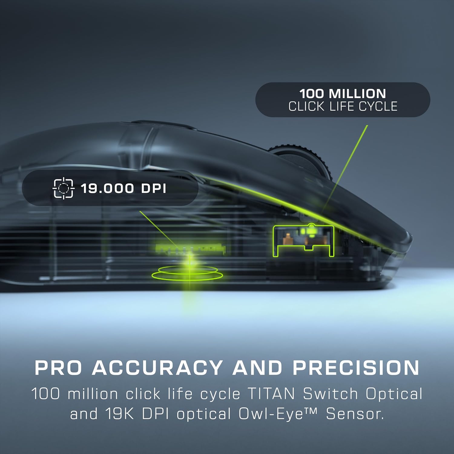Turtle Beach Kone XP Air Wireless Customizable Ergonomic RGB Gaming Mouse, Bluetooth, 19K DPI Optical Sensor, 100-hour Battery & Charging Dock, 29 Programmable Inputs & RGB Lighting, 4D Wheel – Black