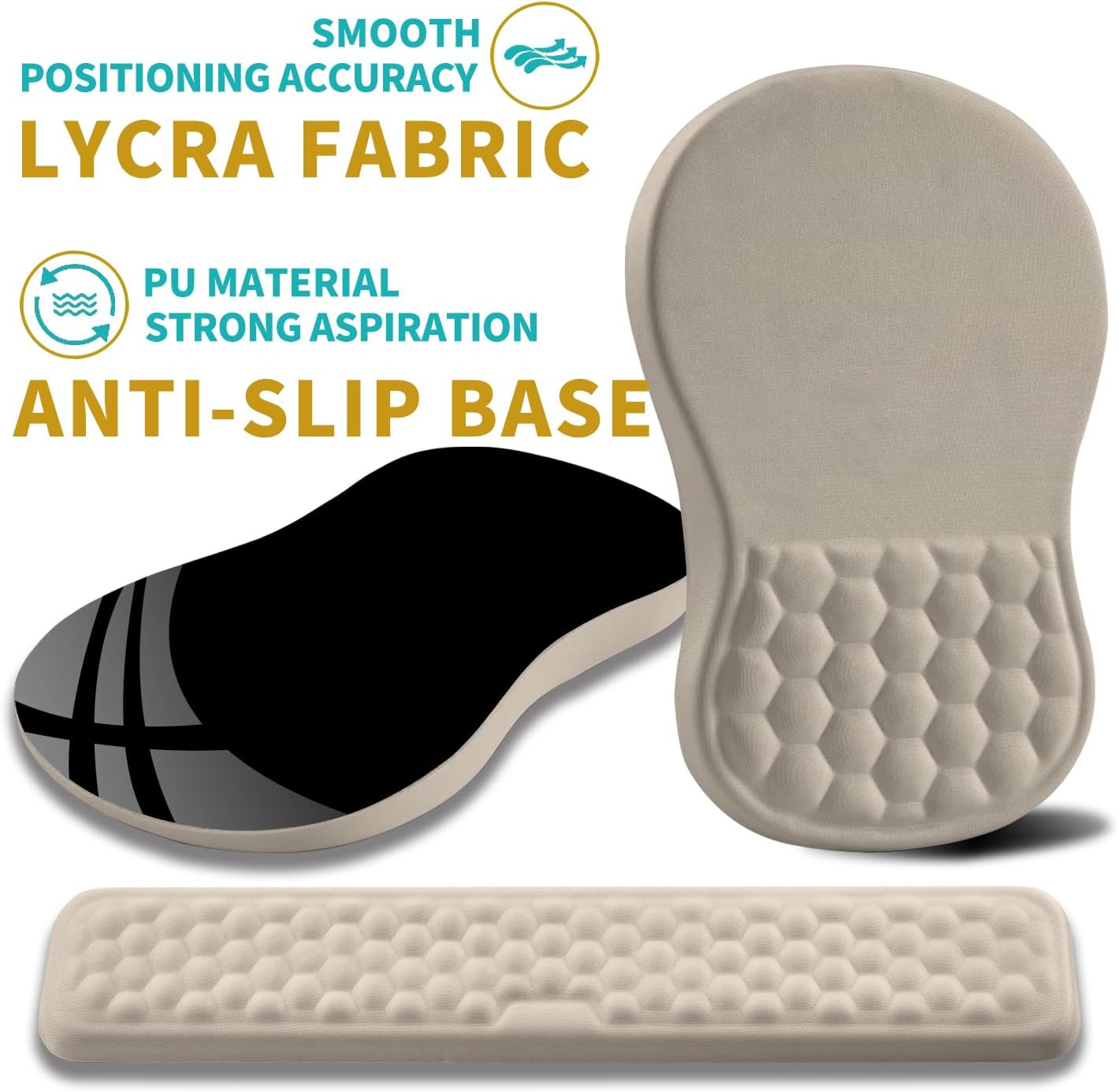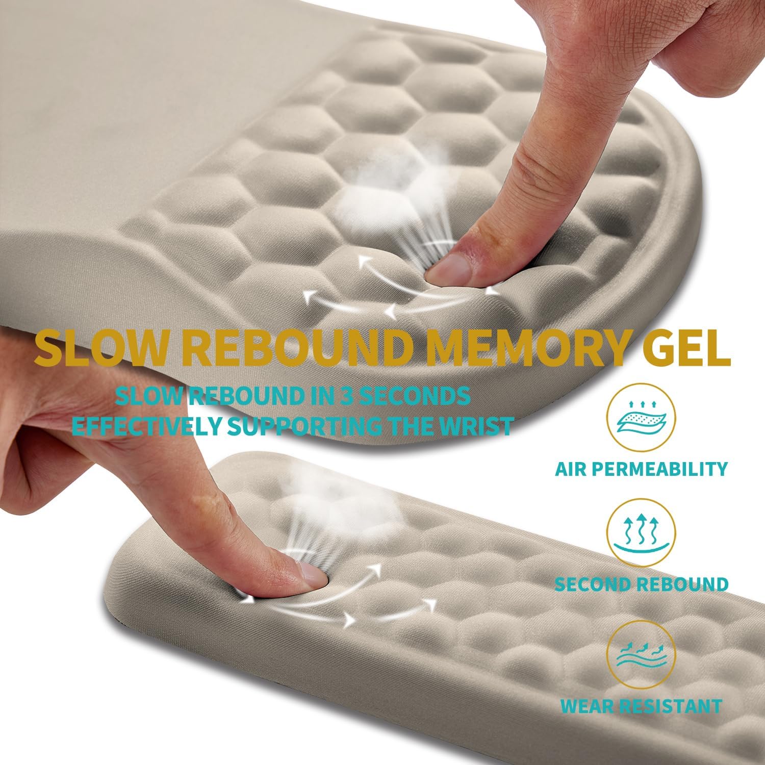 Hokafenle 2 in 1 Ergonomic Mouse Pad Wrist Support & Wrist Rest for Computer Keyboard Set, with Relieve Carpal Tunnel Pain Massage Bulge and Full Memory Gel Design (2In1 Set - Apricot)