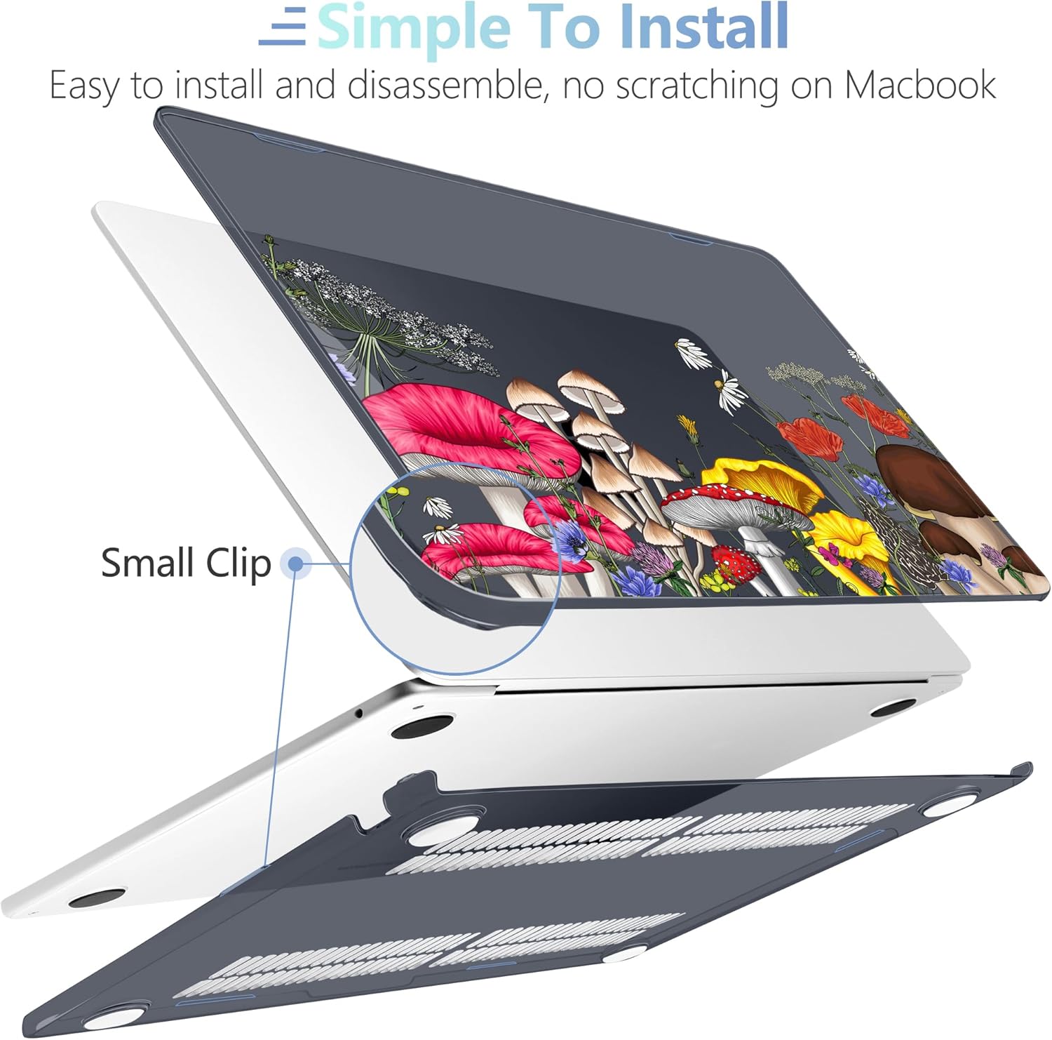 - Design Features of Case: The bottom case is designed with vents for maximum heat dissipation. The bottom case has non-slip feet to avoid slipping during use. The precise cutting design allows you to access all the ports of your MacBook. For Macbook air 2022 case is easy to install and remove