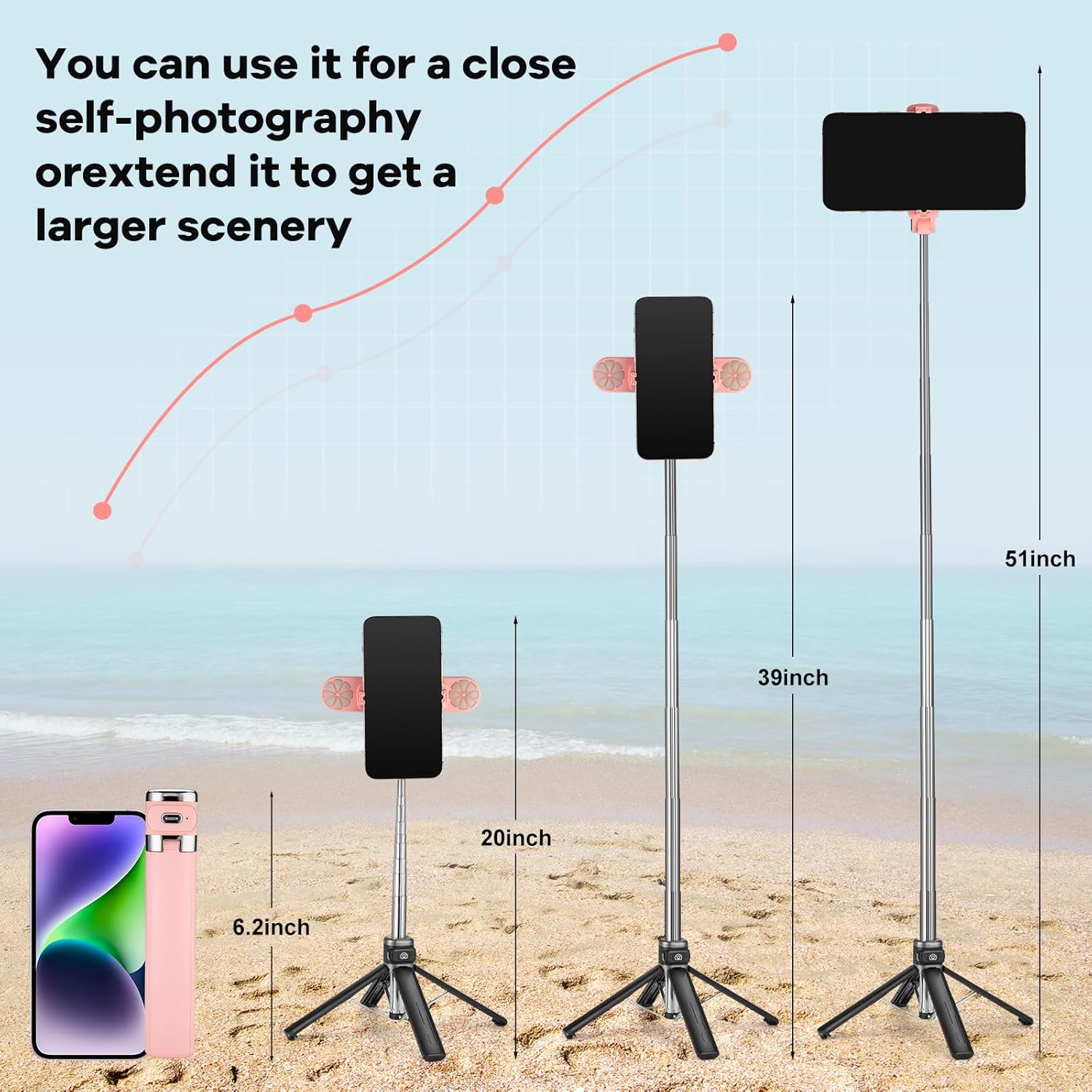 Mini Phone Tripod Stand,MQOUNY 38" Phone Tripod &Selfie Stick with Wireless Rechargeable Remote & Removable Light, Extendable Tripod Stand 360 Rotation Compatible with Phone&Android (MEI-Pink)