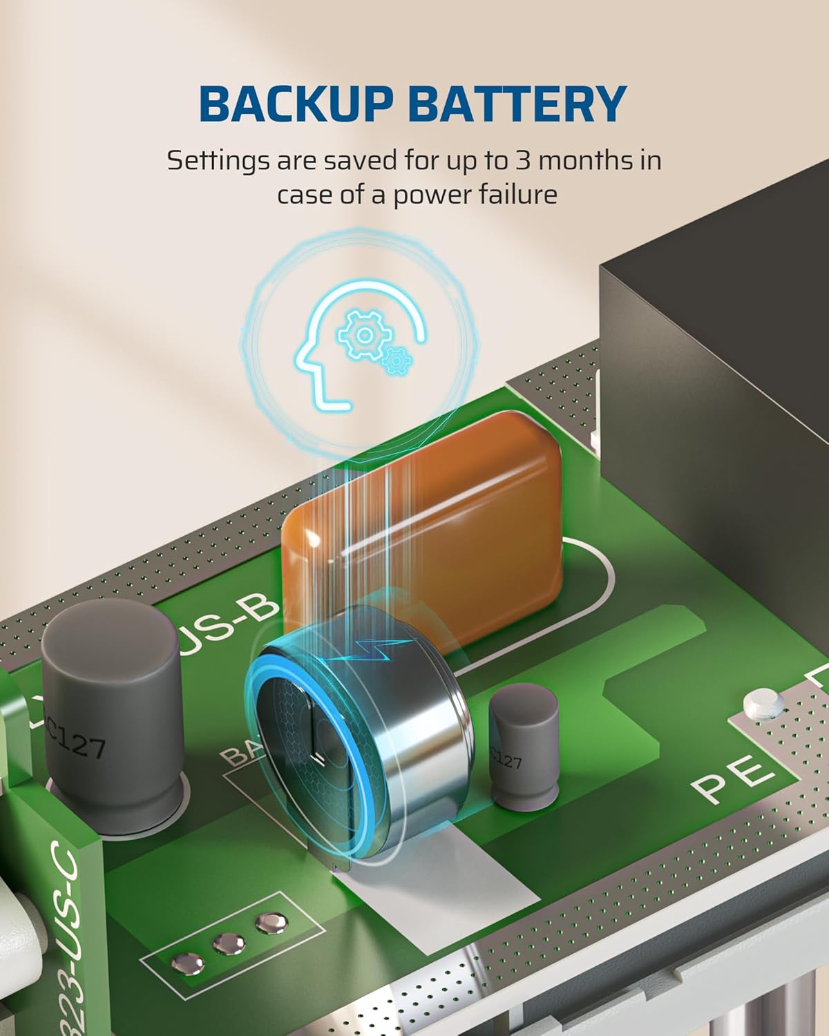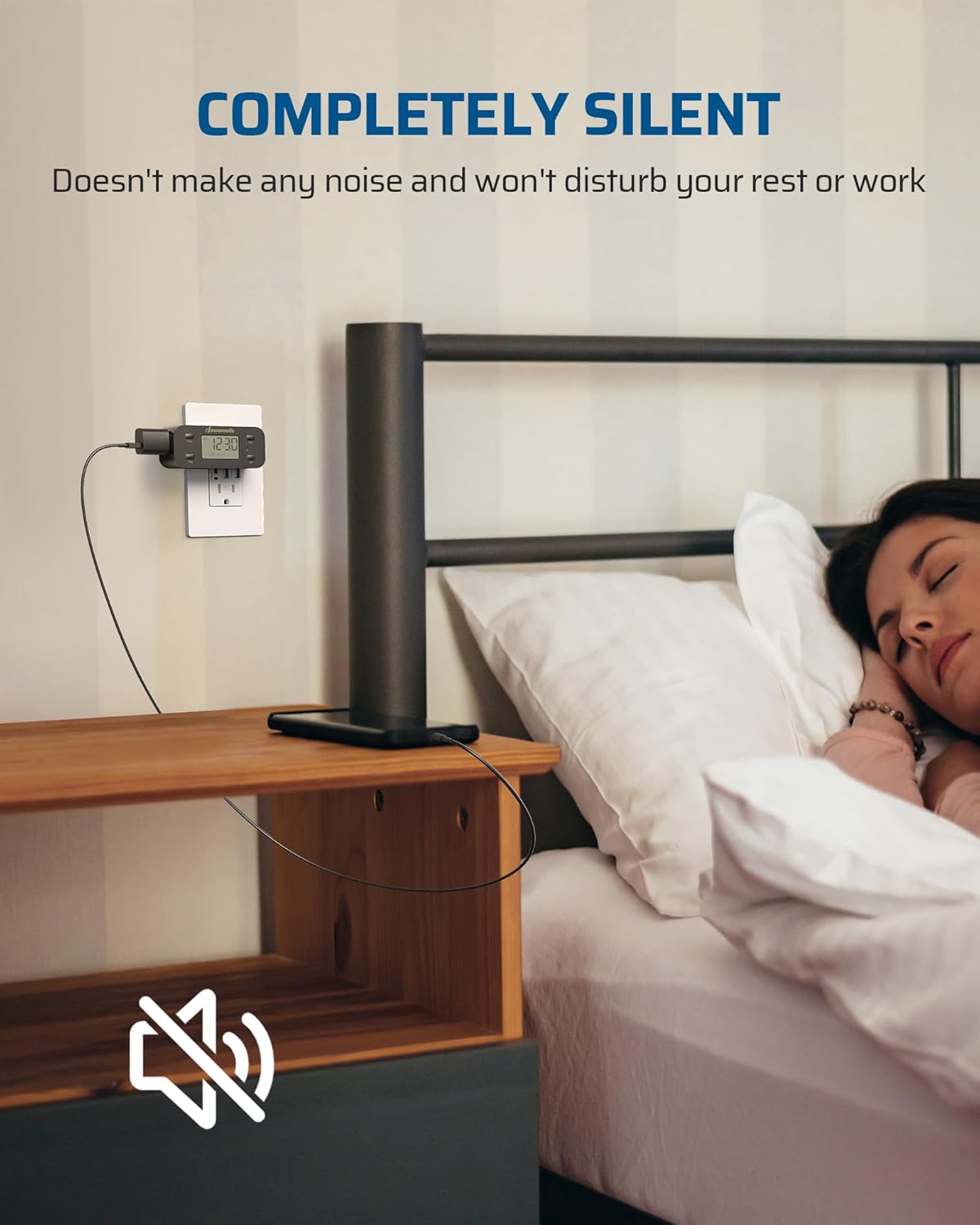- [Backup Battery & Silent Operation] Our indoor outlet timers include a backup battery that maintains your programmed settings for up to 3 months in the event of a power outage or disconnection; experience silent operation, making it perfect for use in bedrooms