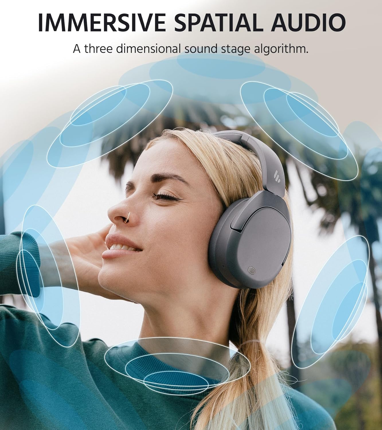 Edifier W830NB Wireless Over Ear Headphones with -45dB Active Noise Cancelling, 94H Playtime, LDAC Hi-Res Sound, Spatial Audio, Fast Charging, Multipoint Connection, Bluetooth V5.4 - Gray