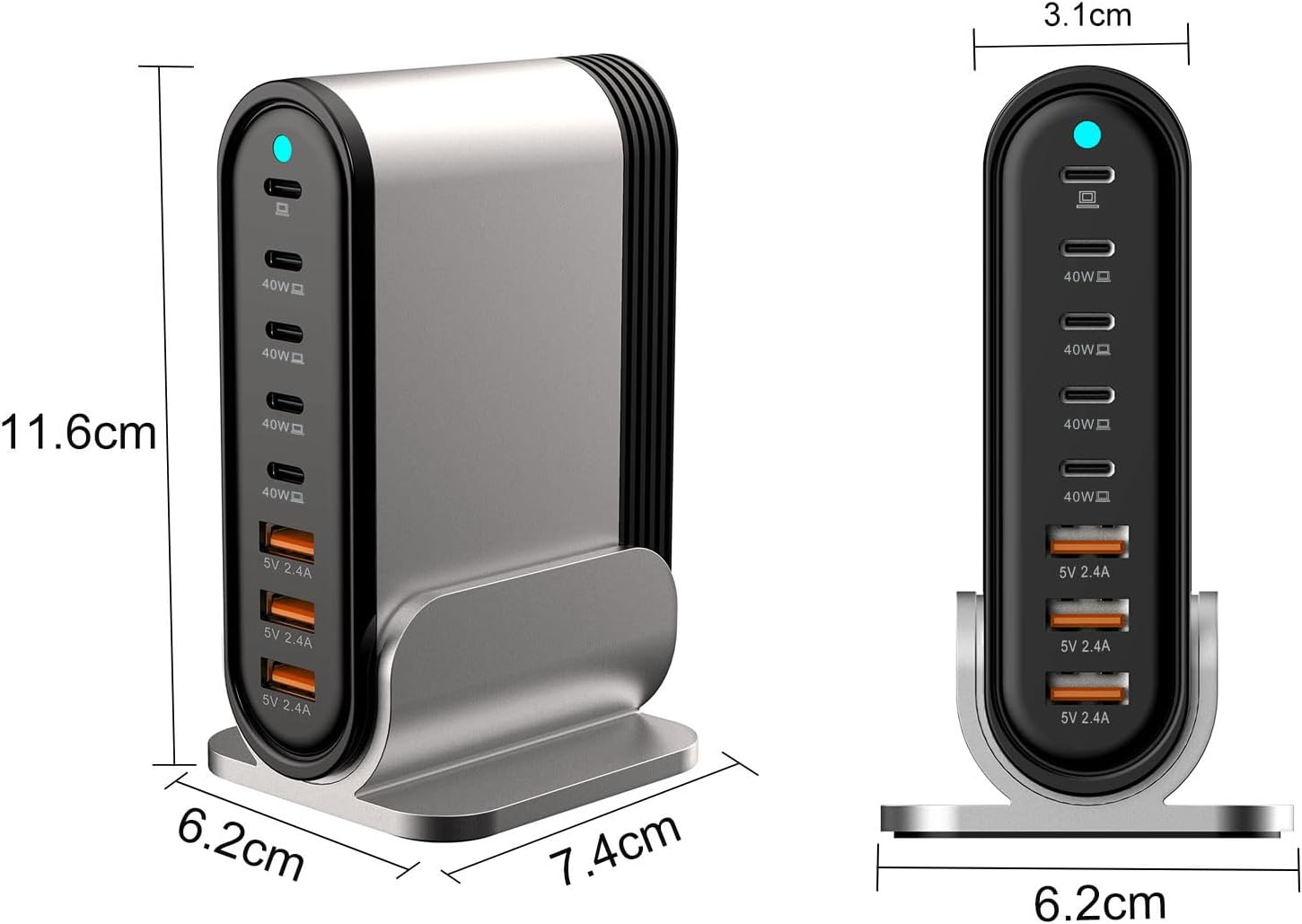 USB C Fast Charger : Fast Charging Station : 285W-8 Port Desktop Multiple Devices Power Adapter for Laptop MacBook Pro/Air, DELL, Tablet iPad Pro/Air, iPhone 16/15/14, Galaxy S23/22