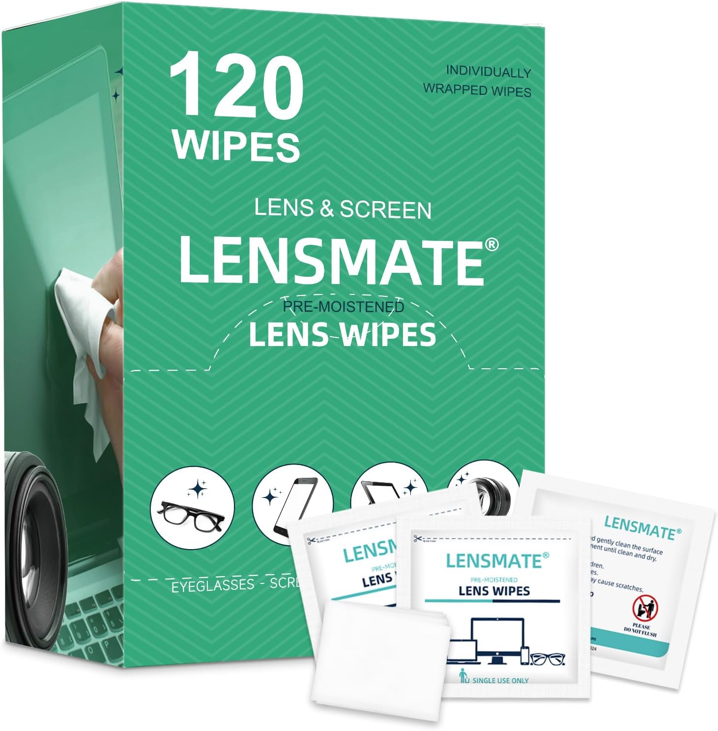 Lensmate 120 Count Lens Wipes for Eyeglasses, Pre-Moistened & Individually Wrapped Eyeglass Wipes, Lens Cleaning Wipes for Eyeglasses, Sunglasses, Goggles and Camera Lens