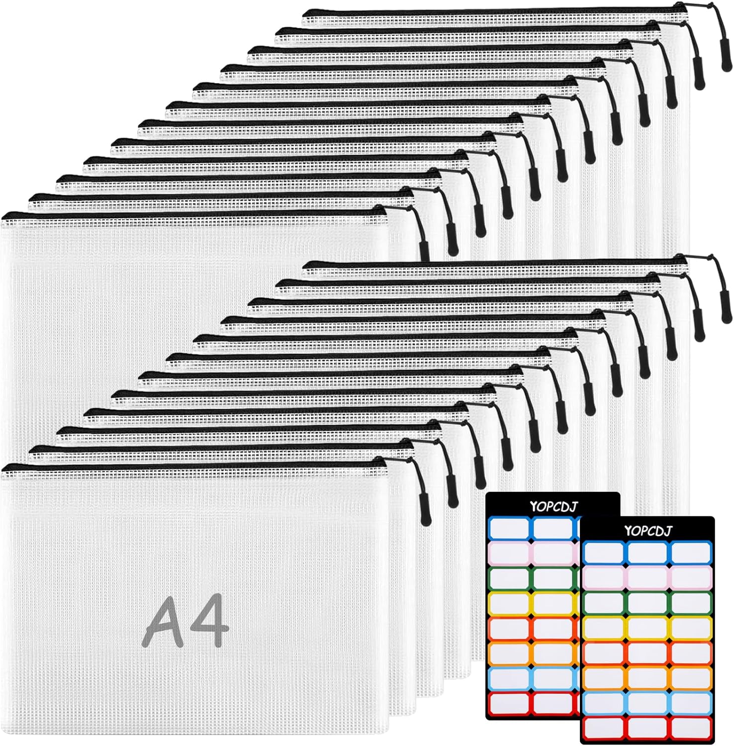 24pcs A4 Mesh Zipper Pouch File Bags, Black Reusable Zipper Bags for Organizing Storage, Waterproof Puzzle Bag, Zipper File Bags for Board Game Storage and School Office Supplies