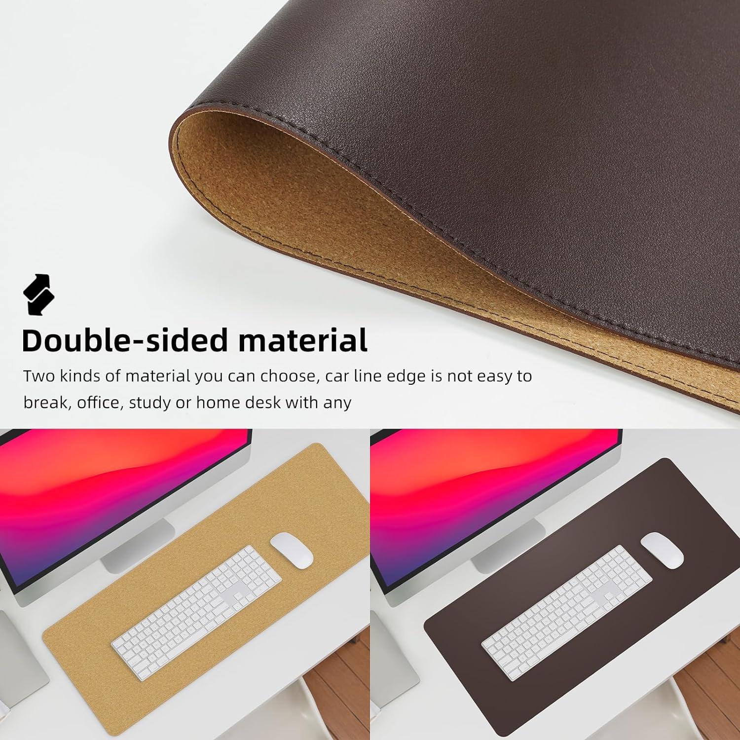 Leather Desk pad Protector, Large Desk mat with Natural Cork & PU Leather,Mouse pad,Non-Slip Office Desk Mat,Waterproof Desk Writing Pad for Office and Home (Coffee 31.5in*17in)